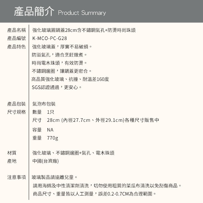 強化玻璃圓鍋蓋28cm強化玻璃圓鍋蓋28cmOthers TRANYO 品牌鍋具館