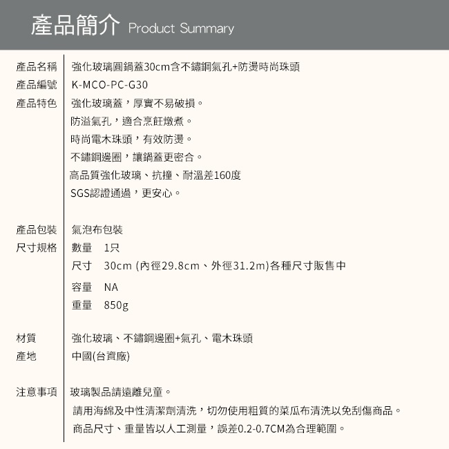 強化玻璃圓鍋蓋30cm強化玻璃圓鍋蓋30cmOthers TRANYO 品牌鍋具館