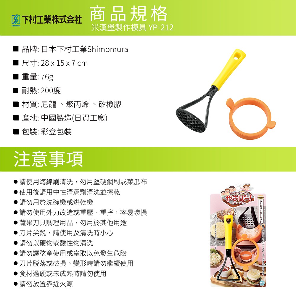 【日本下村工業Shimomura】日本製米漢堡製作耐熱模具套組YP-212【日本下村工業Shimomura】日本製米漢堡製作耐熱模具套組YP-212Bakewares & Decorations TRANYO 品牌鍋具館