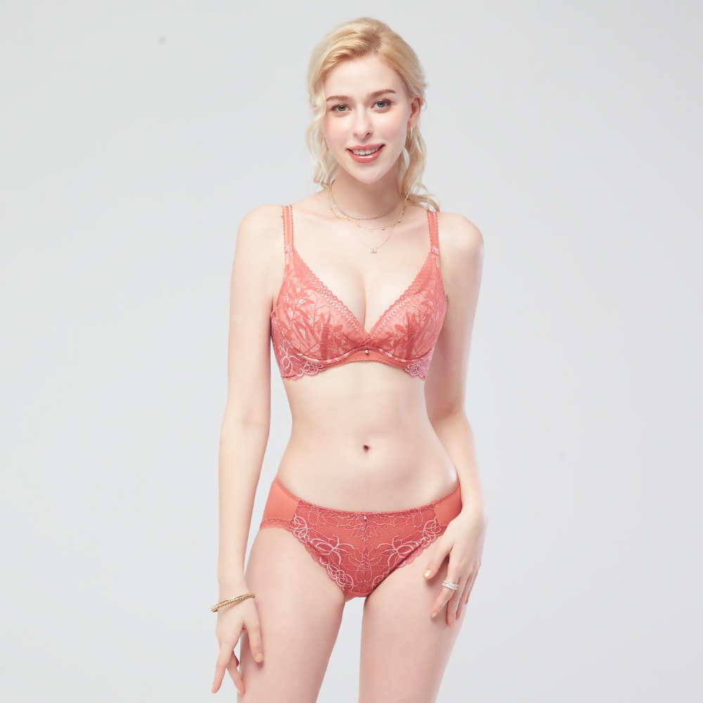 SWEAR 思薇爾 撩波 芙蓉光影系列 M-XL 蕾絲 低腰 三角 女內褲 (果乾紅)M|XL|LPanties SWEAR思薇爾_官方直營