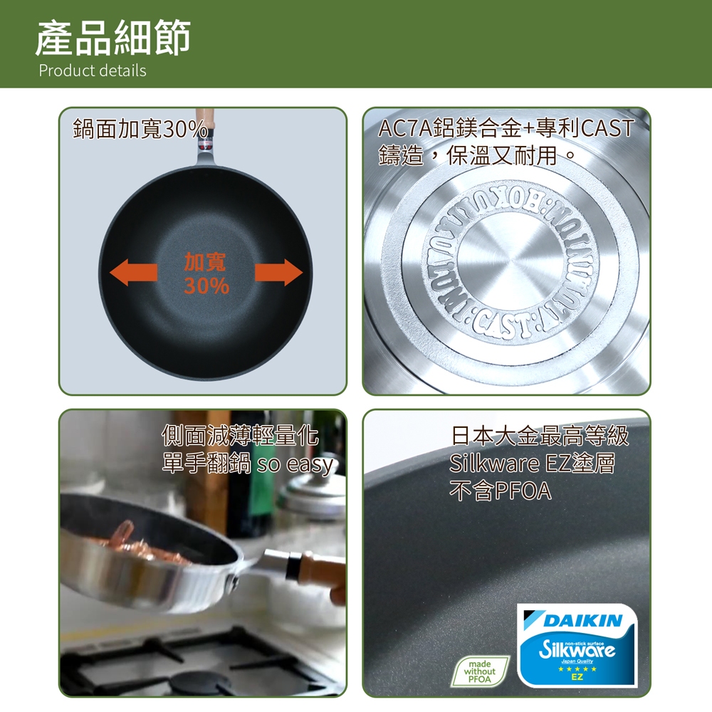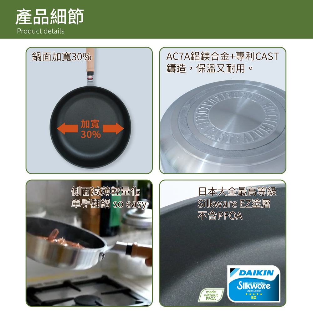 【日本北陸hokua】日本製大金IH輕量級不沾平底鍋28cm不挑爐具/可用金屬鏟平底鍋28cm(無蓋)|平底鍋28cm(含蓋)Pans TRANYO 品牌鍋具館