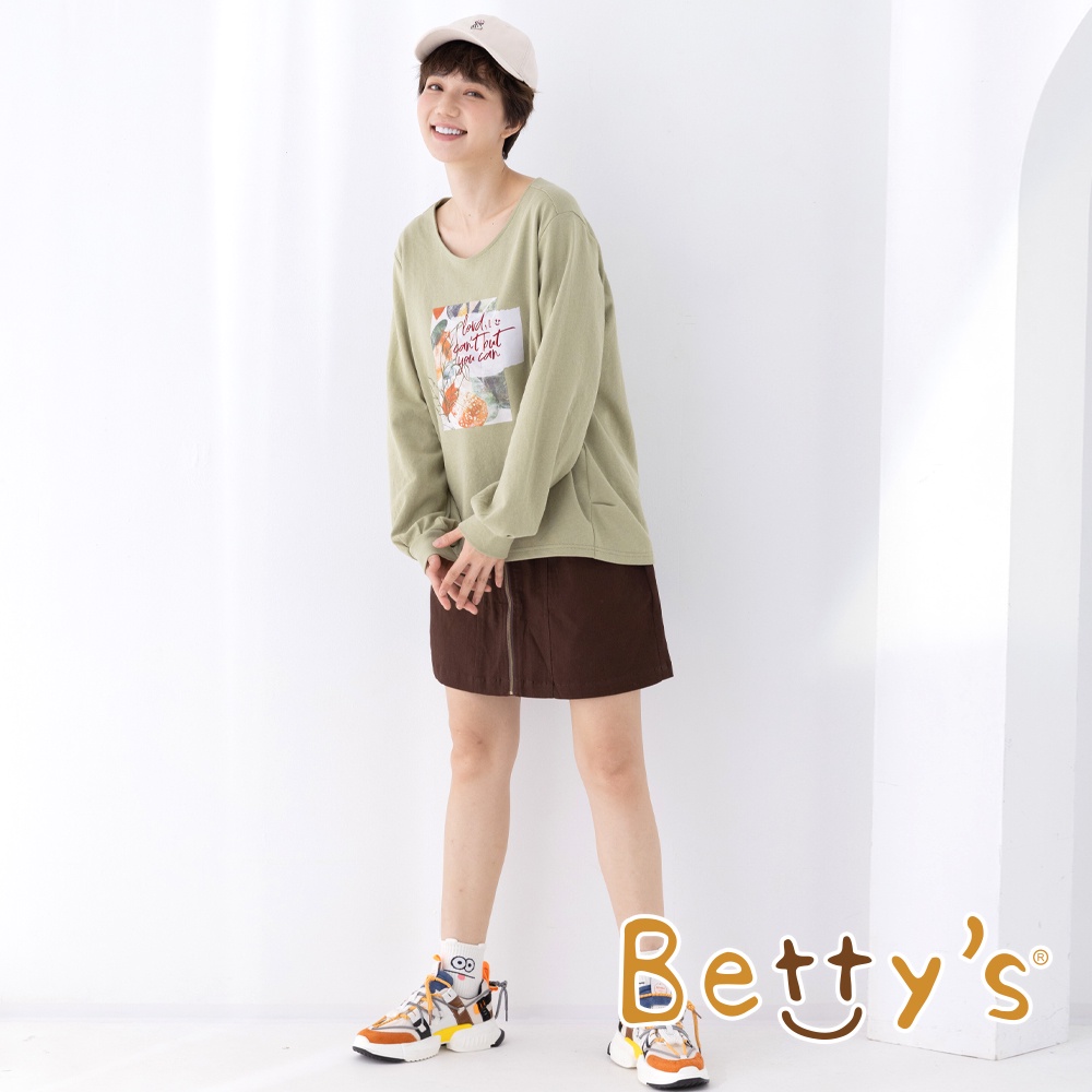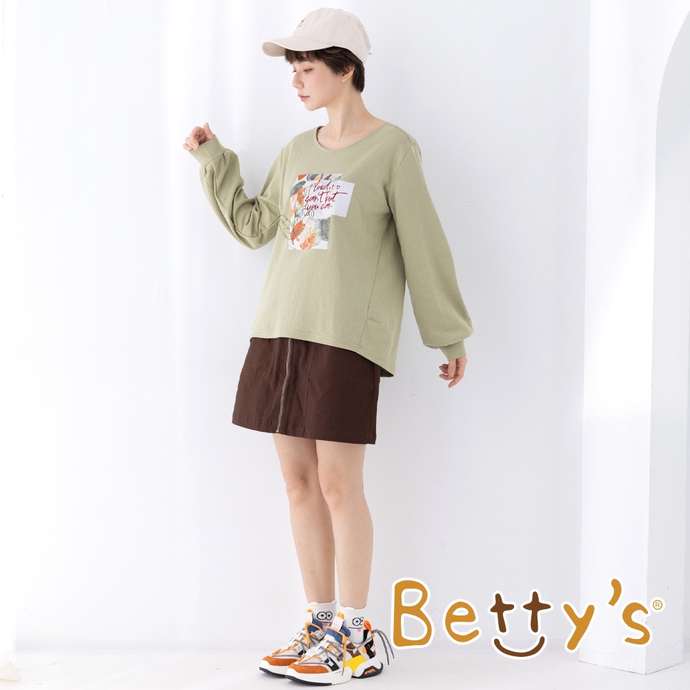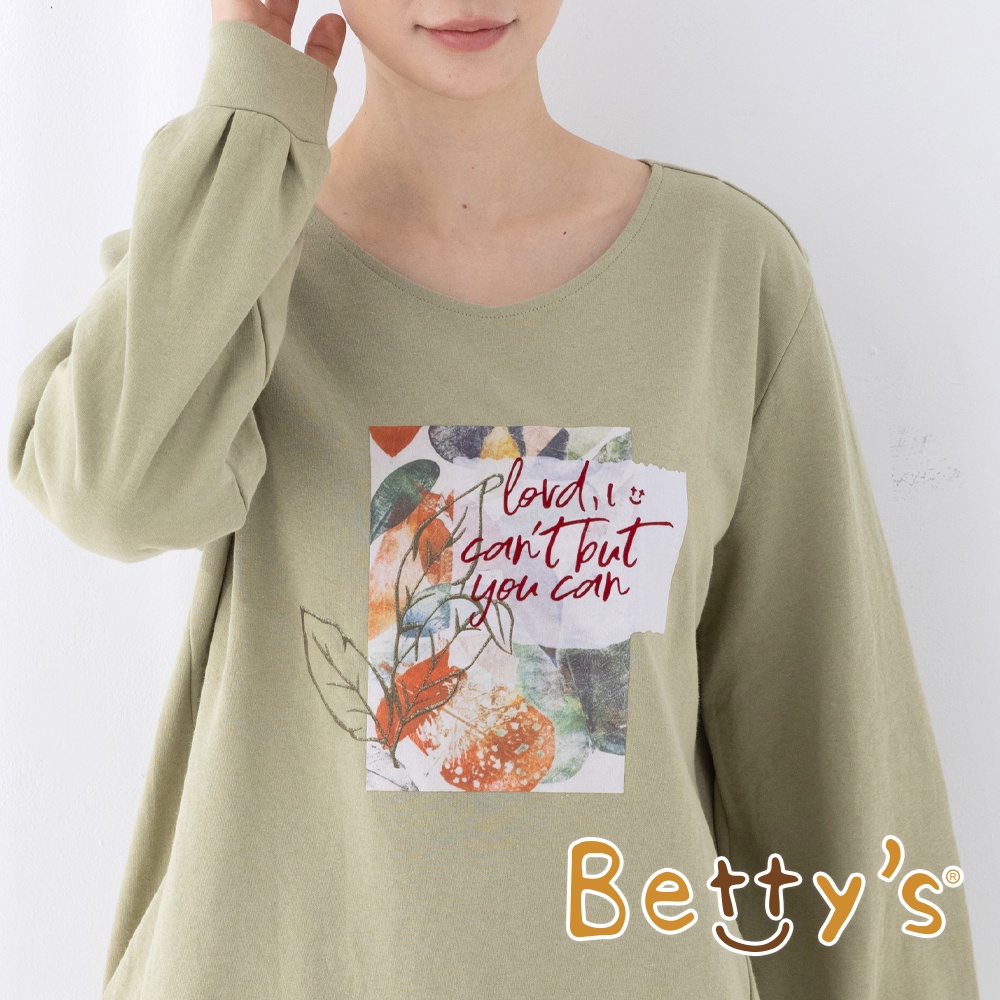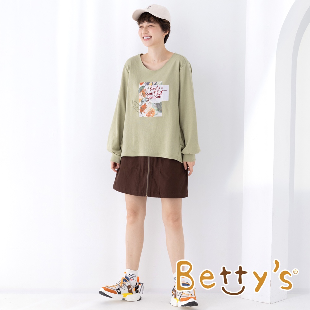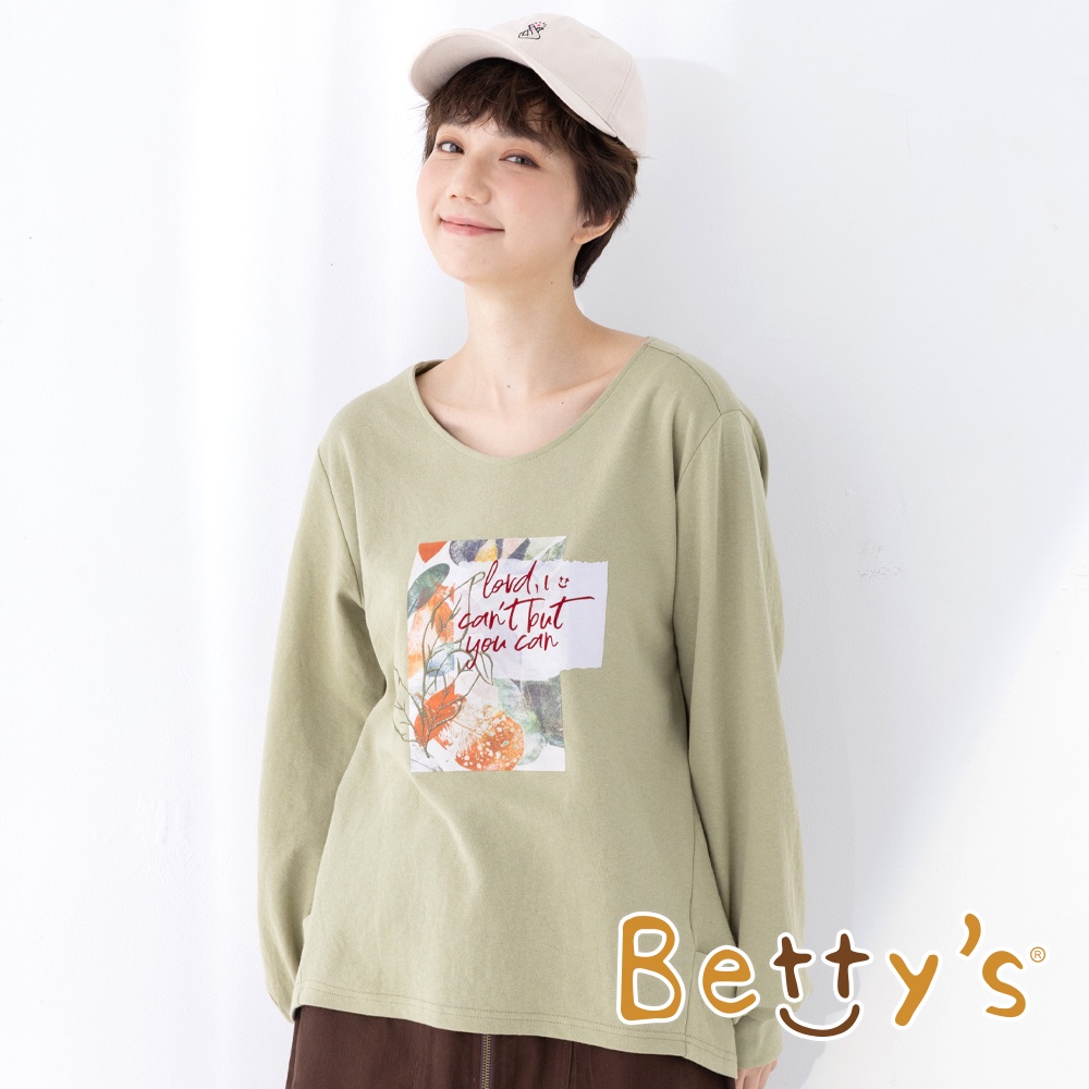 betty’s貝蒂思(15)植絨印花袖口打摺T-shirt(綠色)綠色,M|綠色,LT-shirtsbetty’s貝蒂思