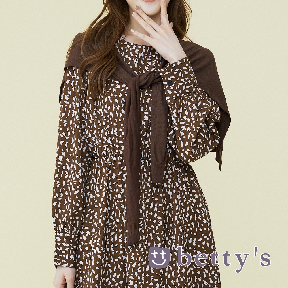 betty’s貝蒂思(15)兩件式碎花收腰披肩長洋裝(咖啡色)咖啡色,Fbetty’s貝蒂思