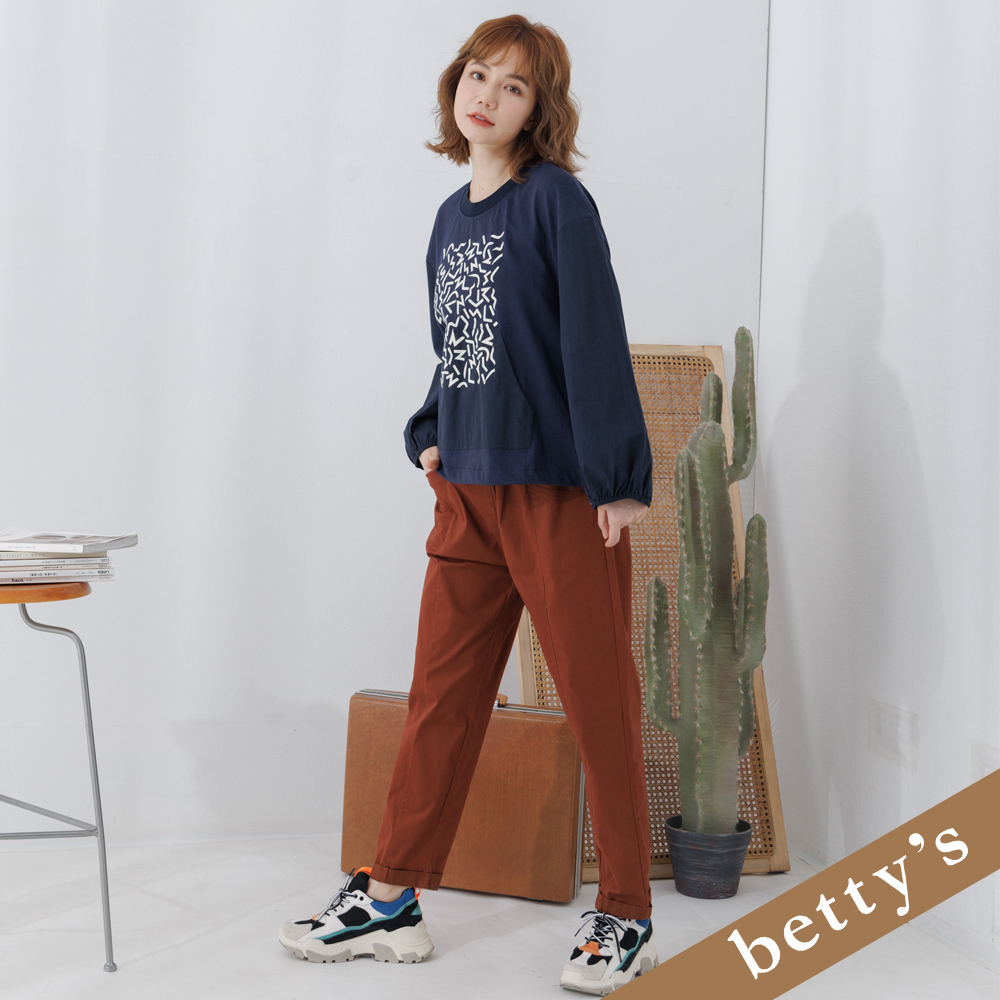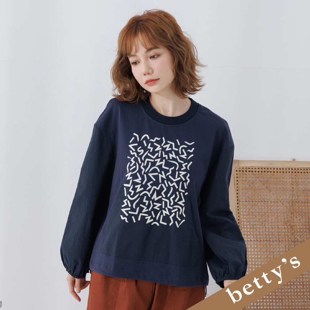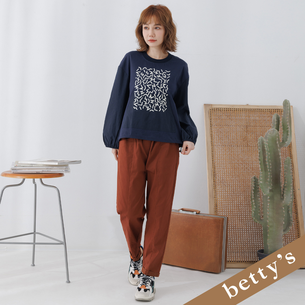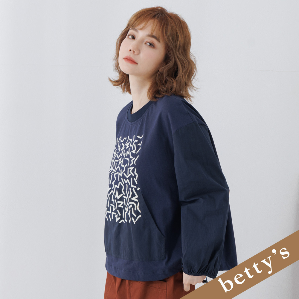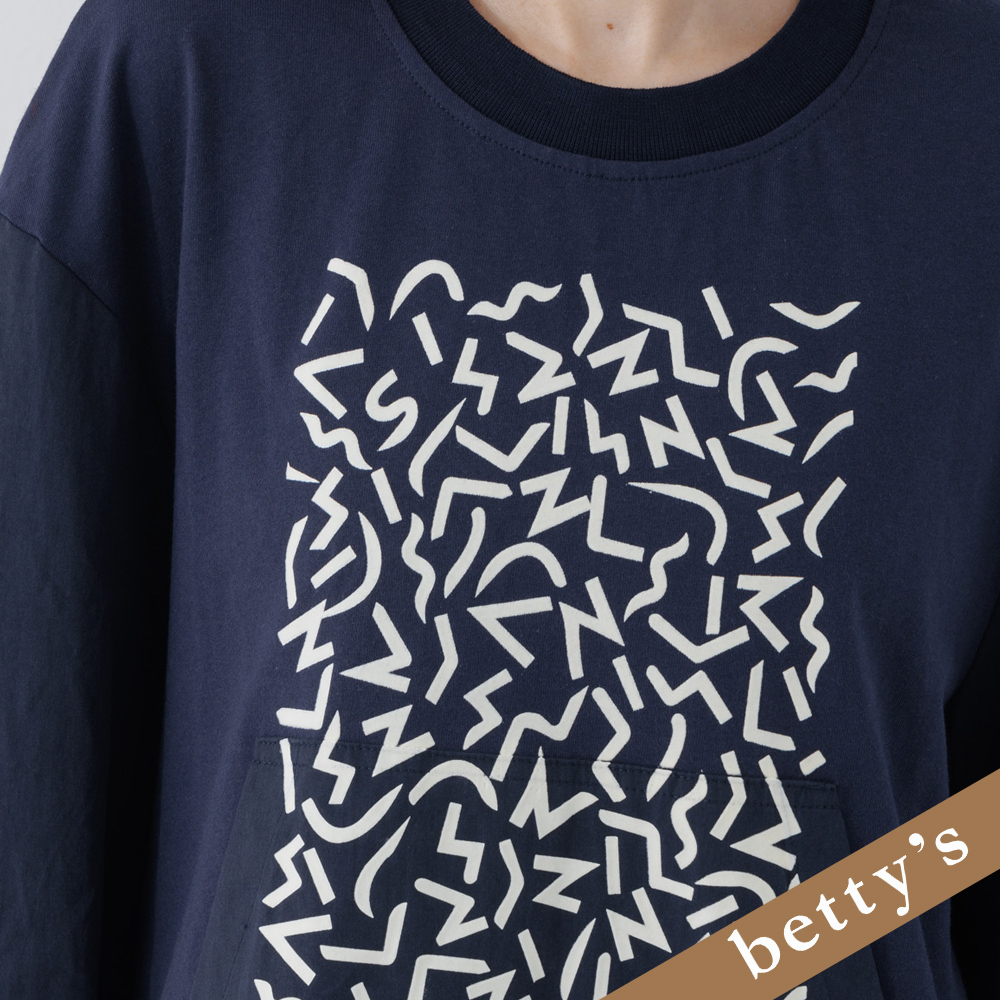 betty’s貝蒂思(25)拼接圖騰下擺抽繩T-shirt(藍色)藍色,M|藍色,LT-shirtsbetty’s貝蒂思