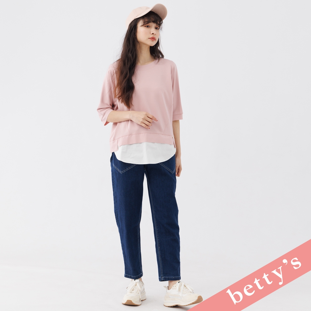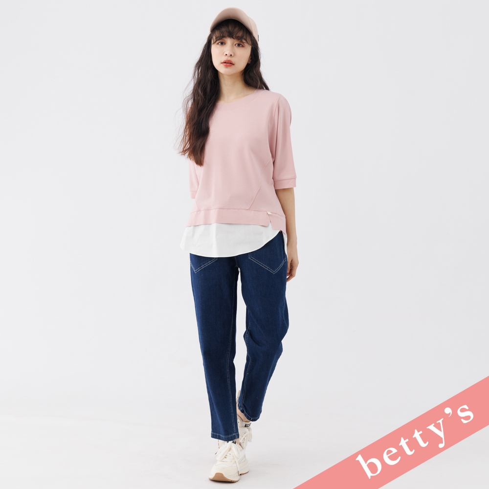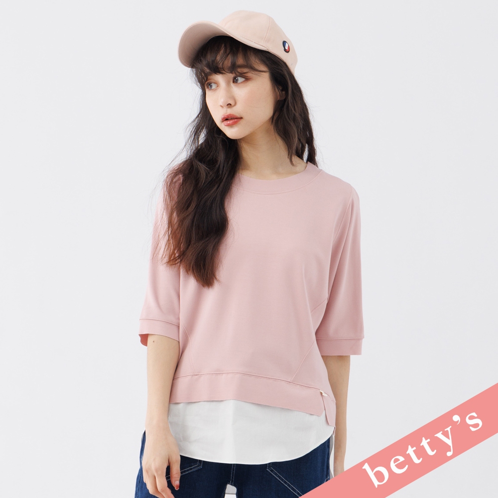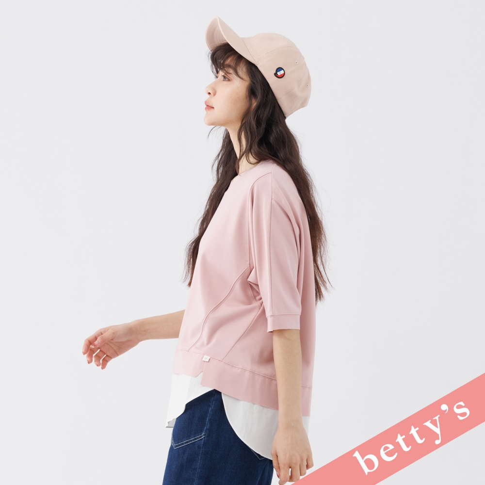 betty’s貝蒂思(31)假兩件不收邊剪裁七分袖T-shirt(粉色)粉色,FT-shirtsbetty’s貝蒂思