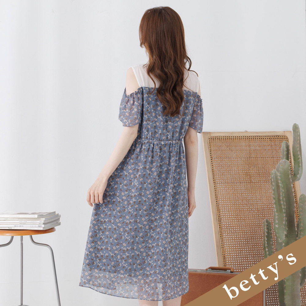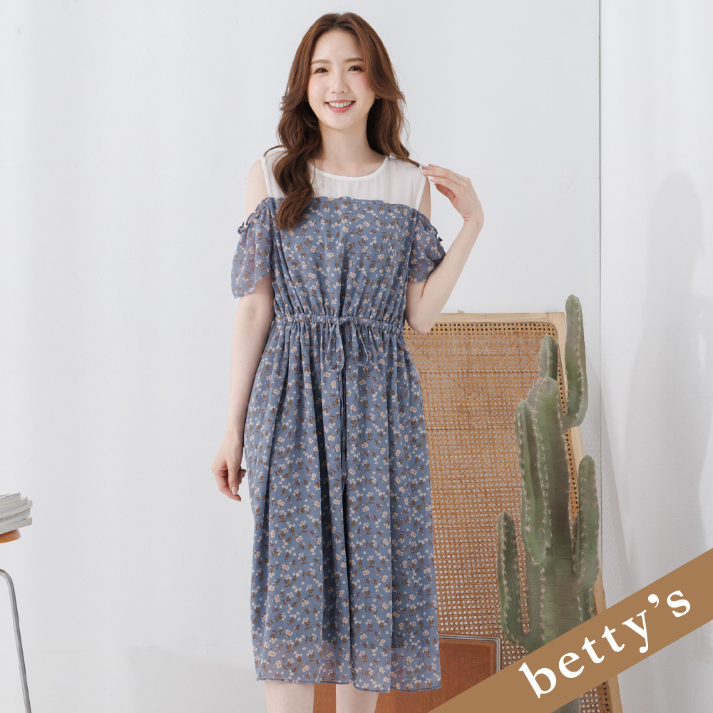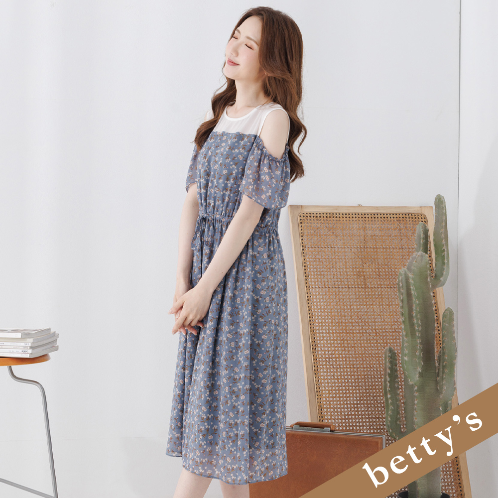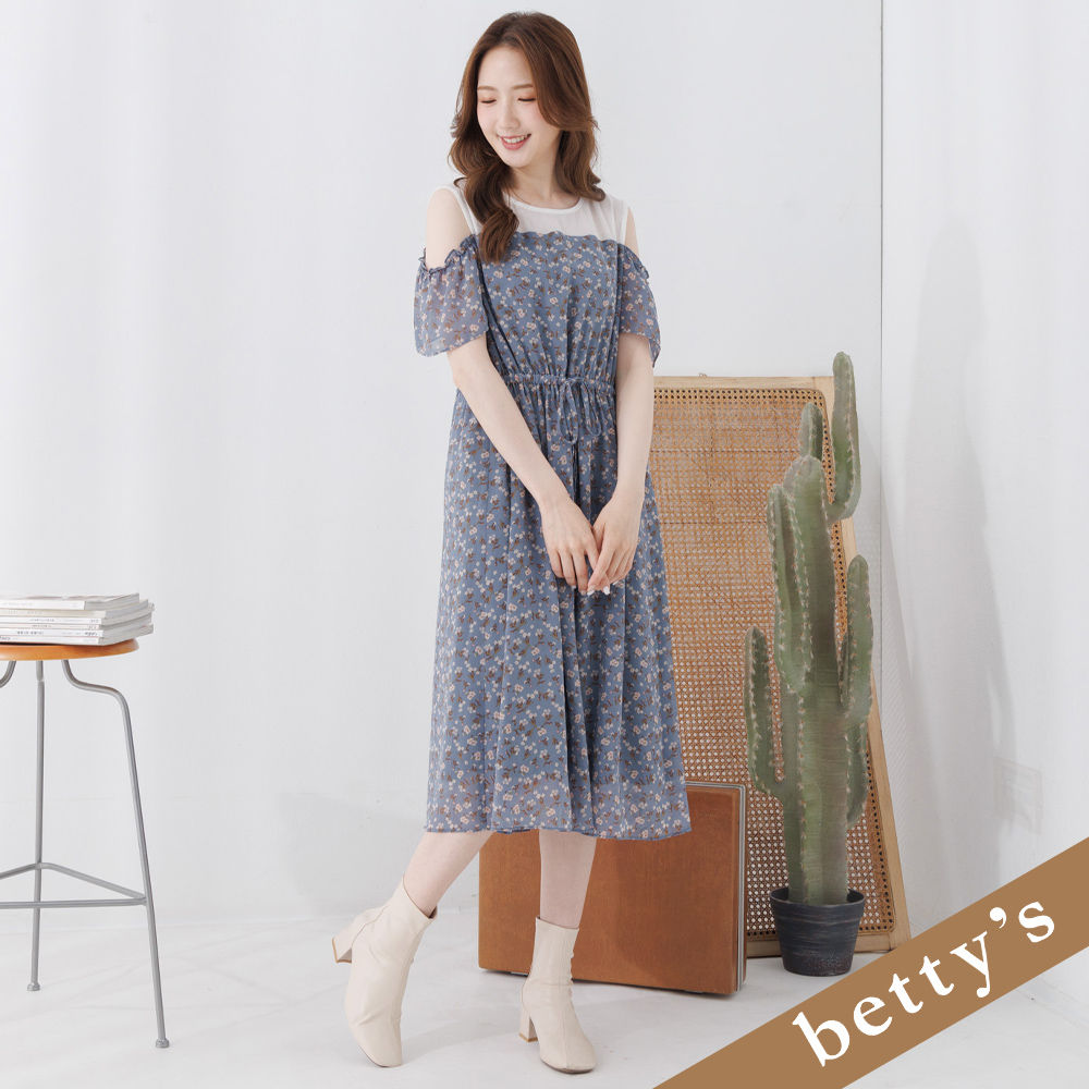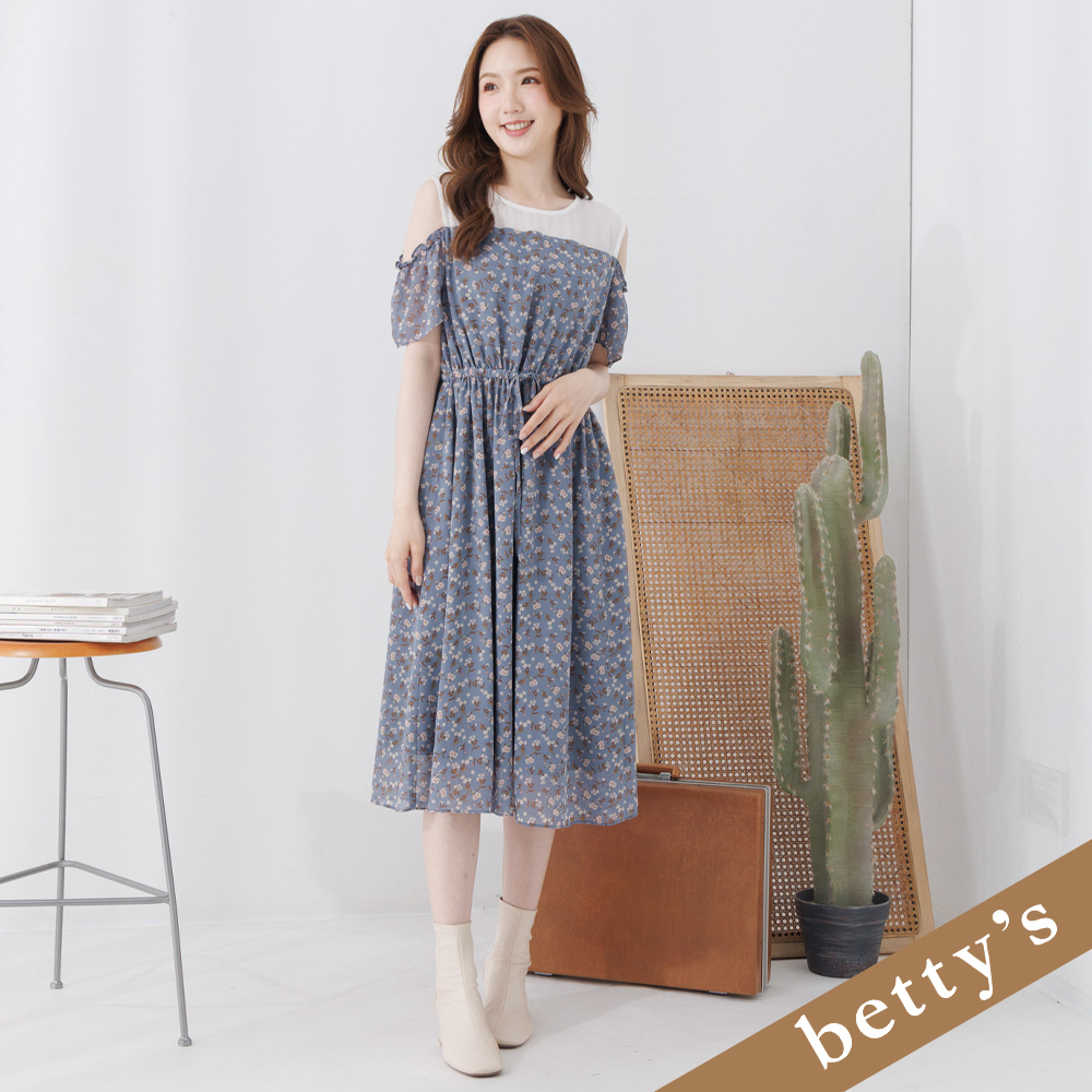betty’s貝蒂思(25)小碎花露肩長洋裝(深藍色)深藍色,M|深藍色,L|深藍色,XLbetty’s貝蒂思