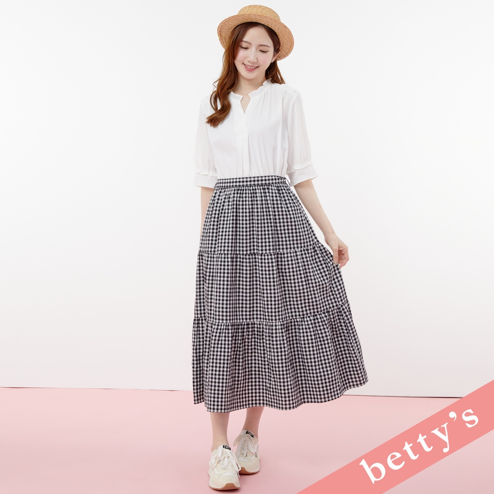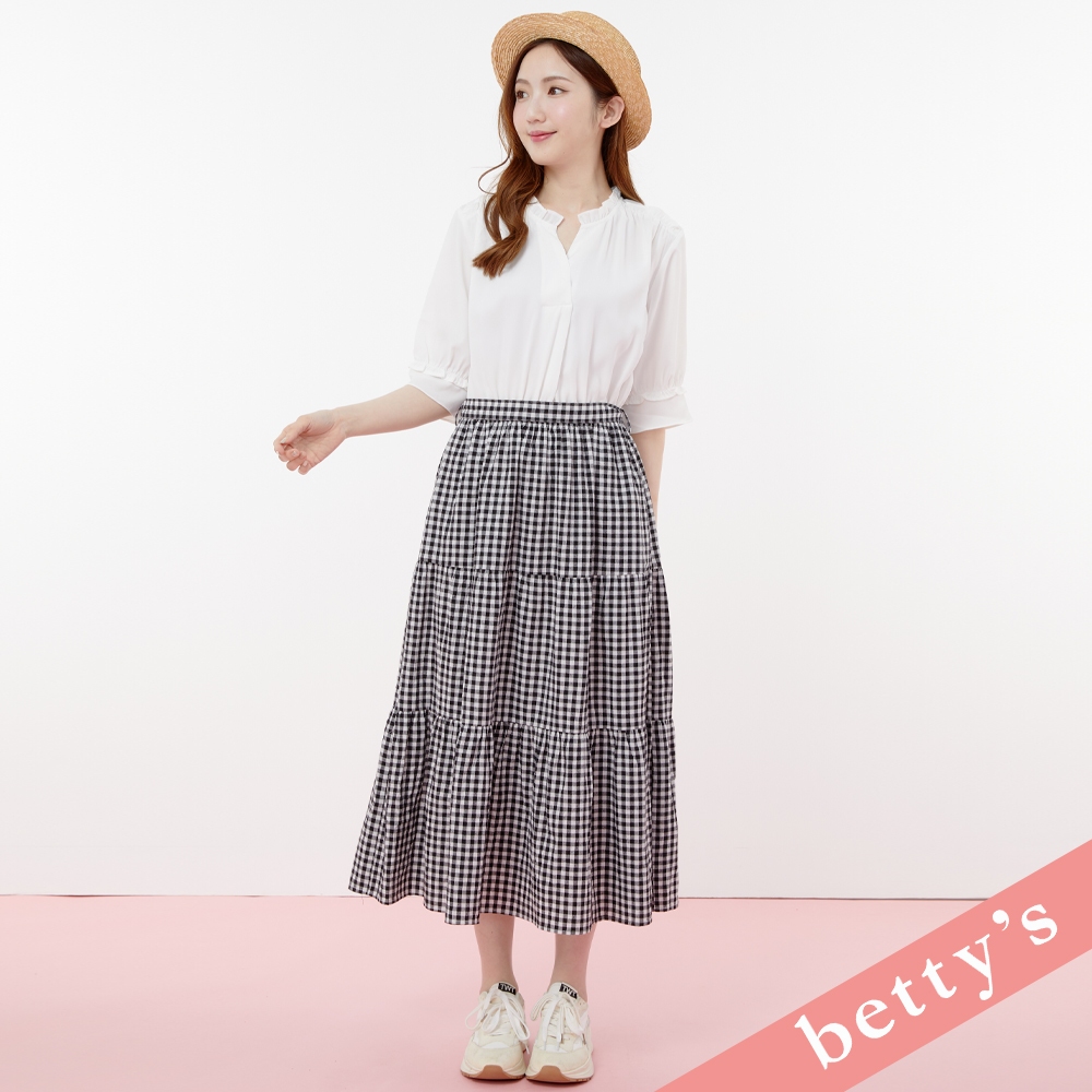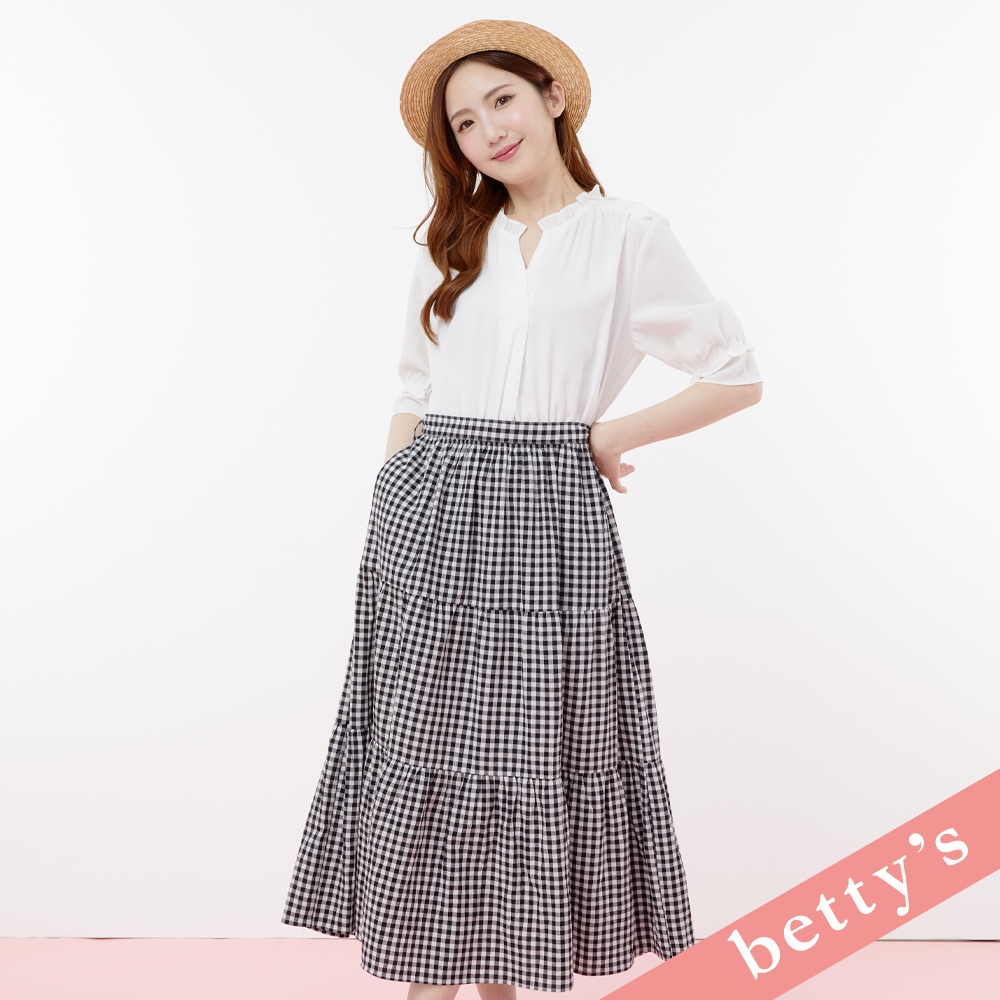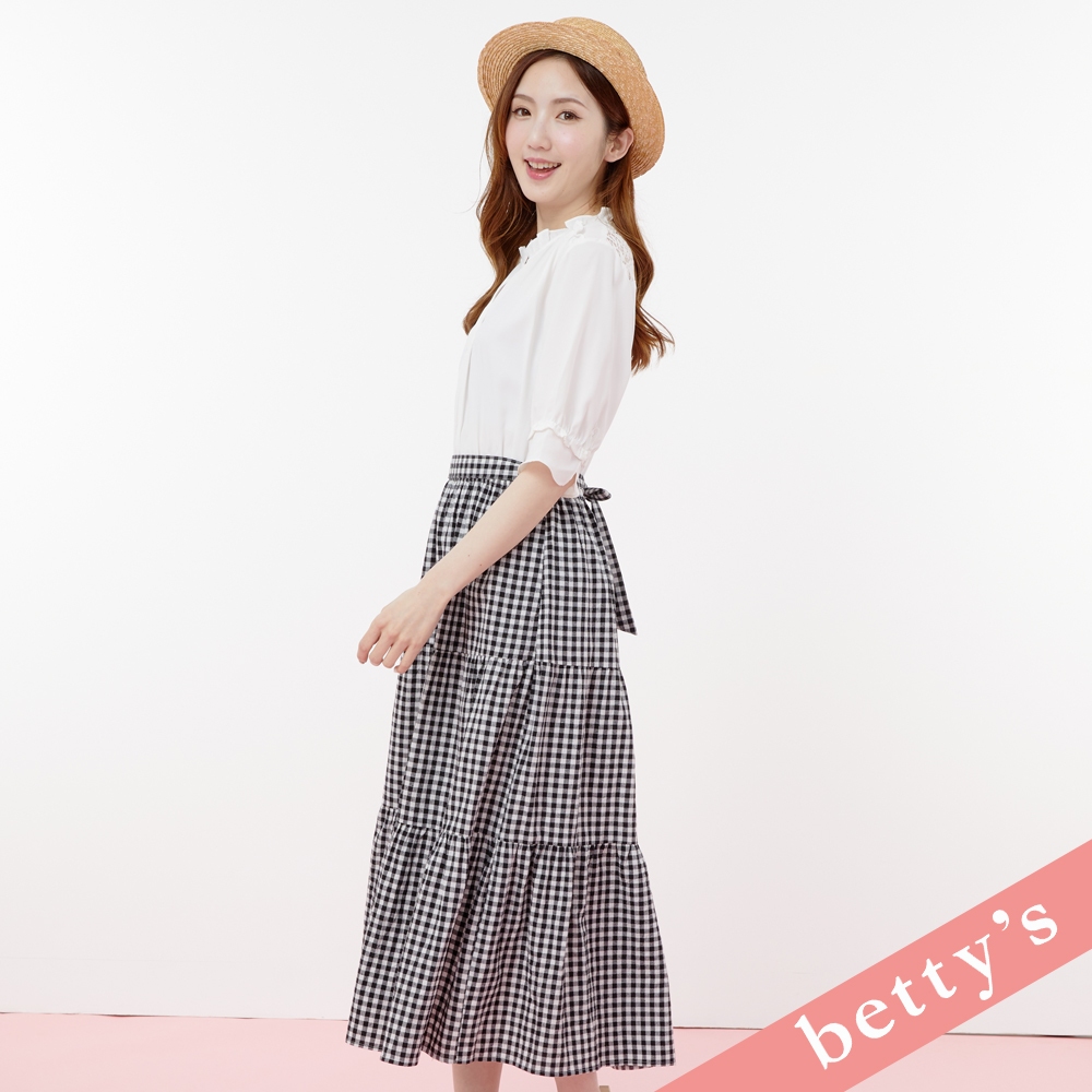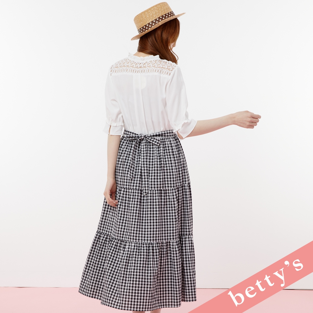 betty’s貝蒂思(31)鏤空蕾絲雪紡格紋長洋裝(黑格子)黑格子,M|黑格子,Lbetty’s貝蒂思