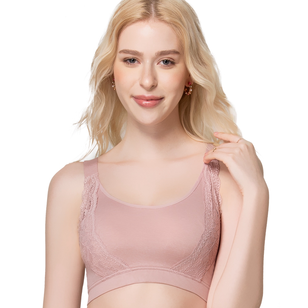 SWEAR 思薇爾 有氧森活系列M-XL無鋼圈蕾絲睡眠短背心(芋膚色)L|M|XLBras SWEAR思薇爾_官方直營