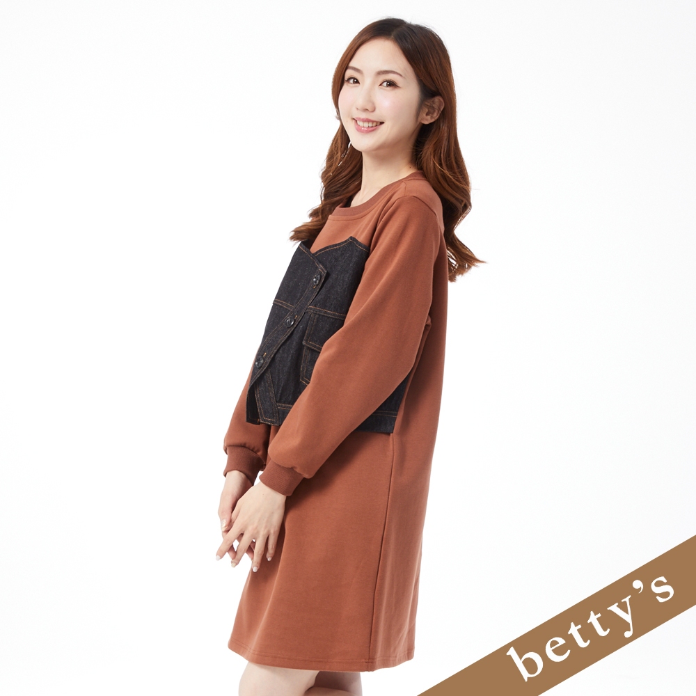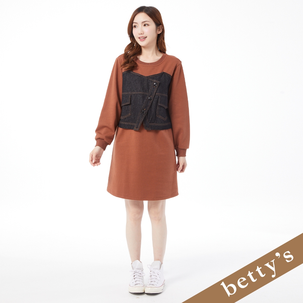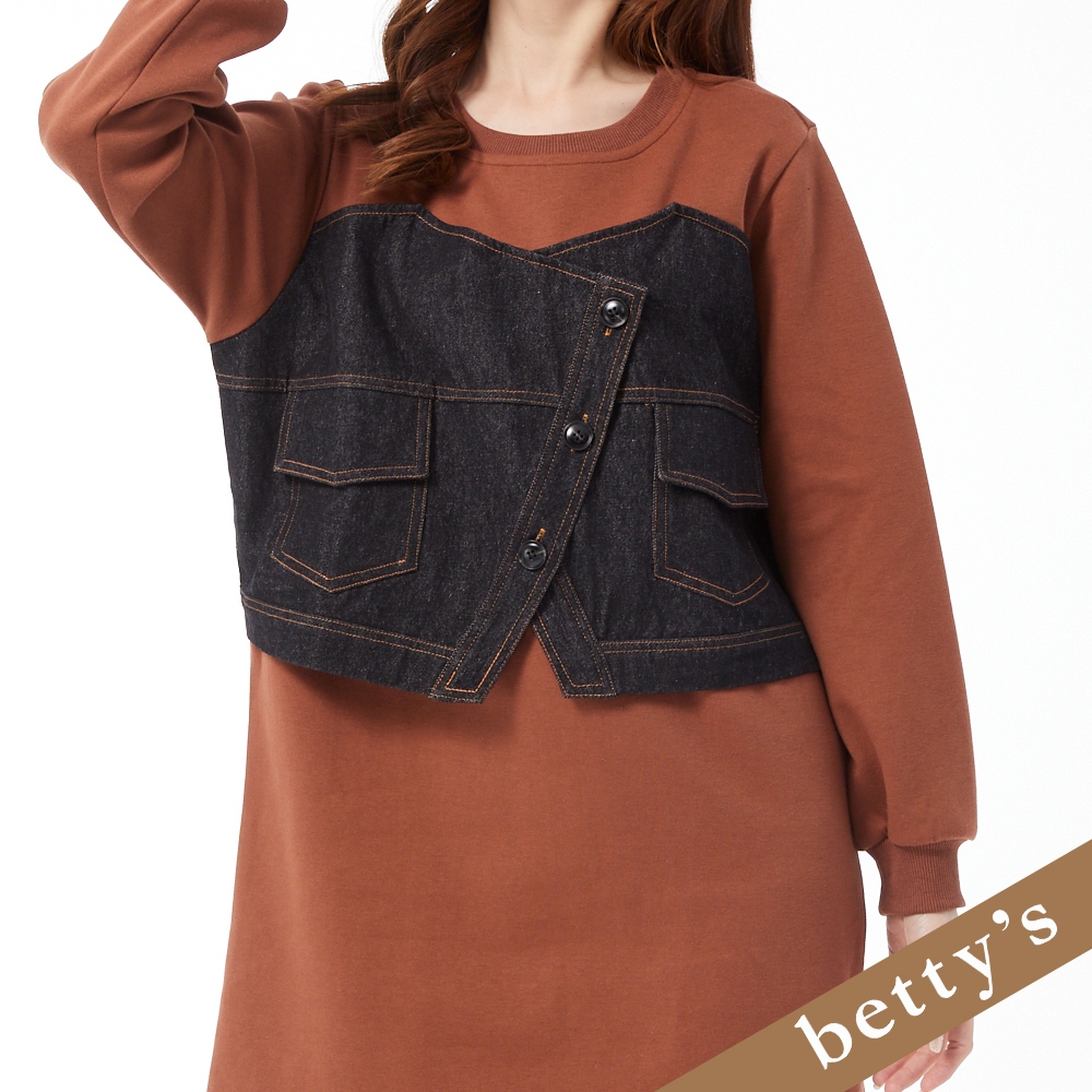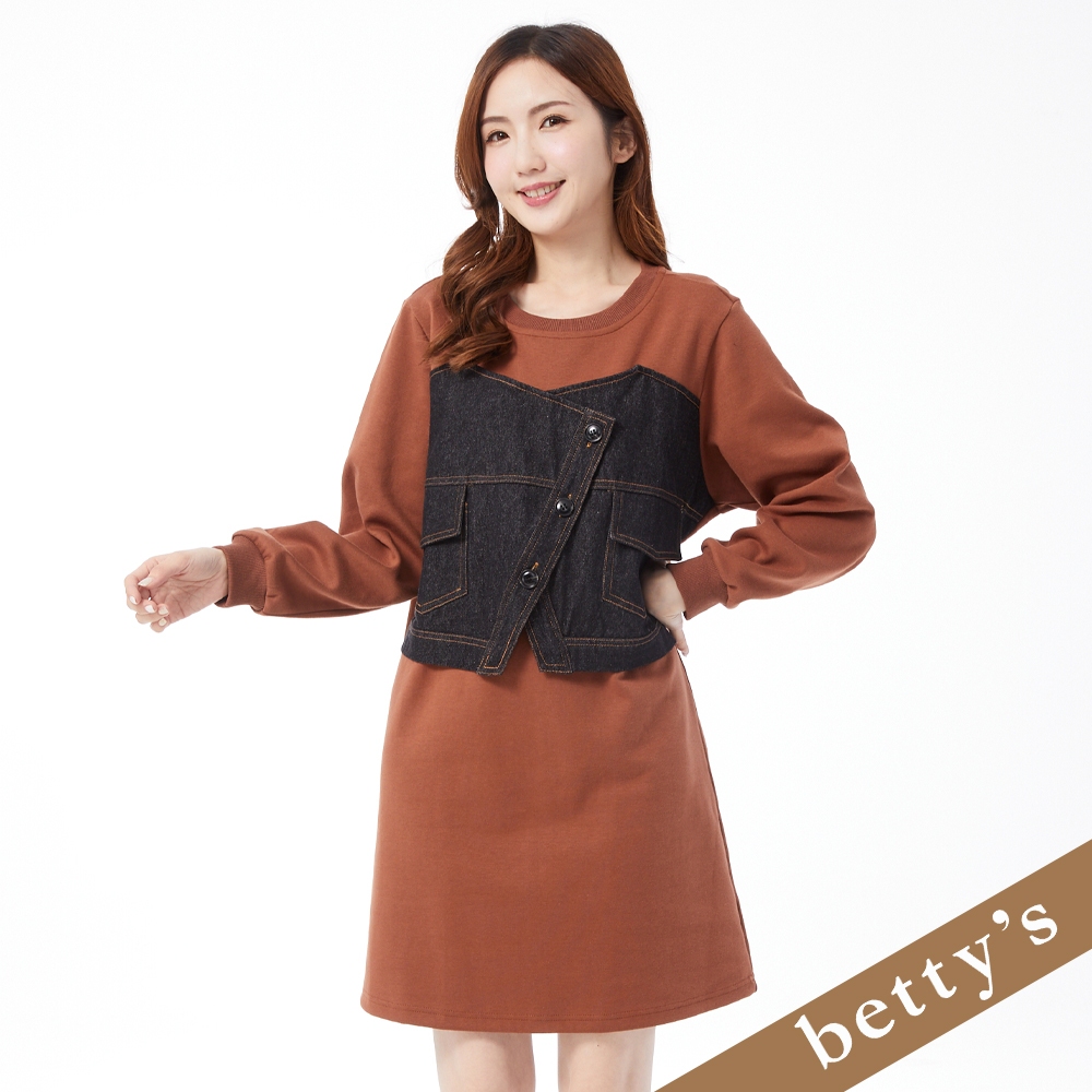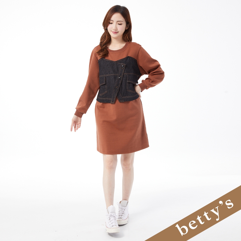 betty’s貝蒂思(25)牛仔馬甲拼接膝上洋裝(咖啡色)咖啡色,M|咖啡色,Lbetty’s貝蒂思