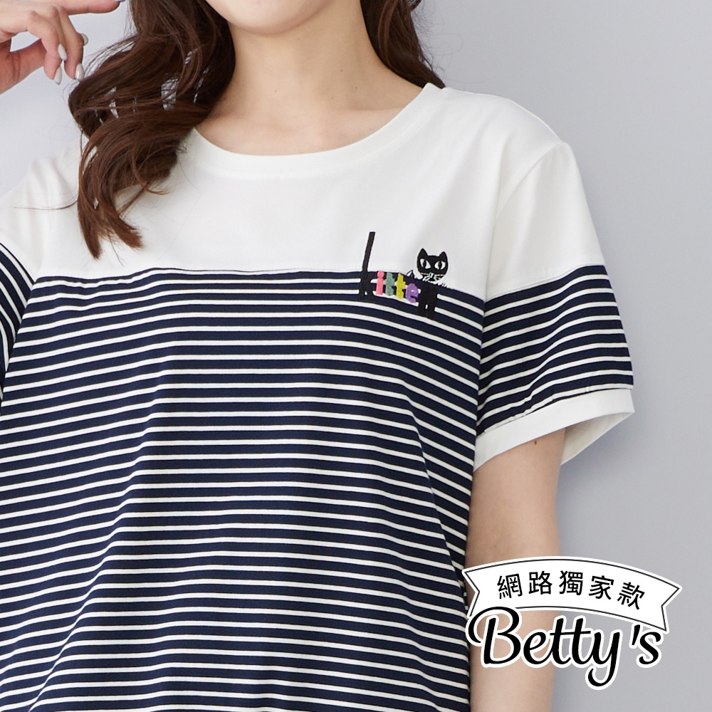 betty’s貝蒂思(50)貓咪繡花條紋涼感百搭上衣(共二色)