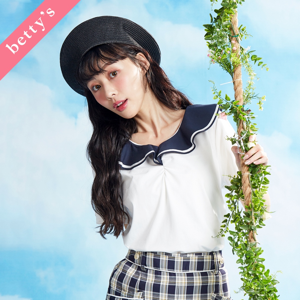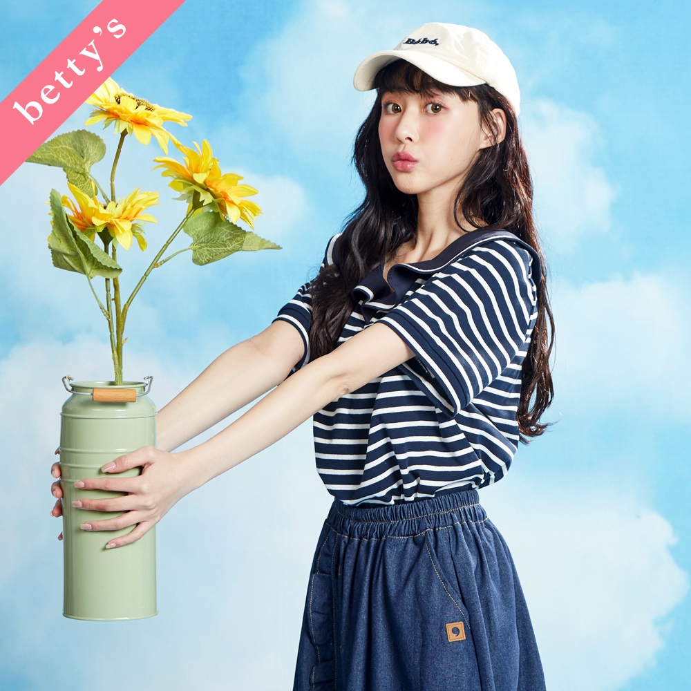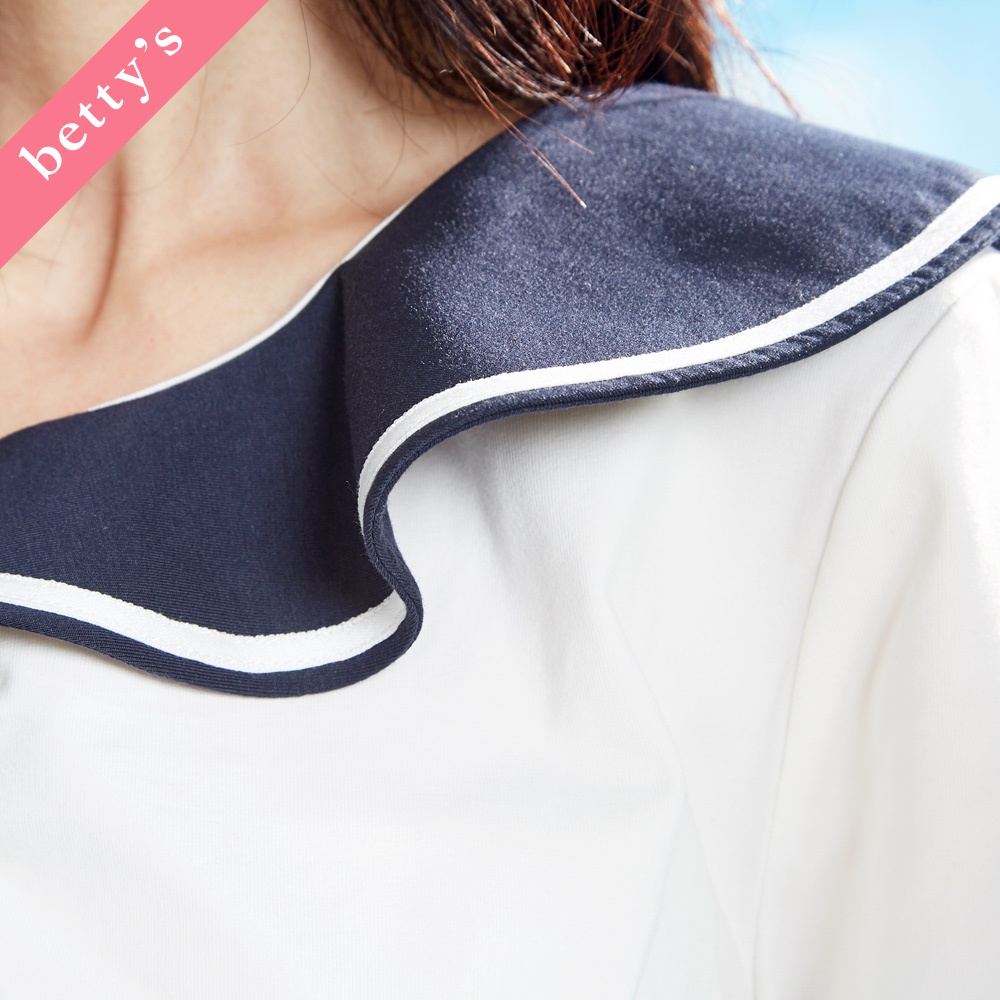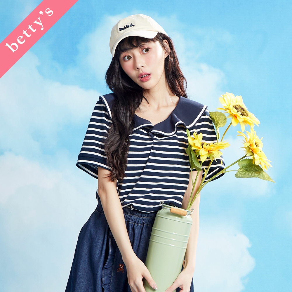 betty’s貝蒂思(41)壓褶壓線水手領短袖T-shirt(共二色)白色,M|白色,L|白色,XL|白色,2XL|深藍,M|深藍,L|深藍,XL|深藍,2XLT-shirtsbetty’s貝蒂思