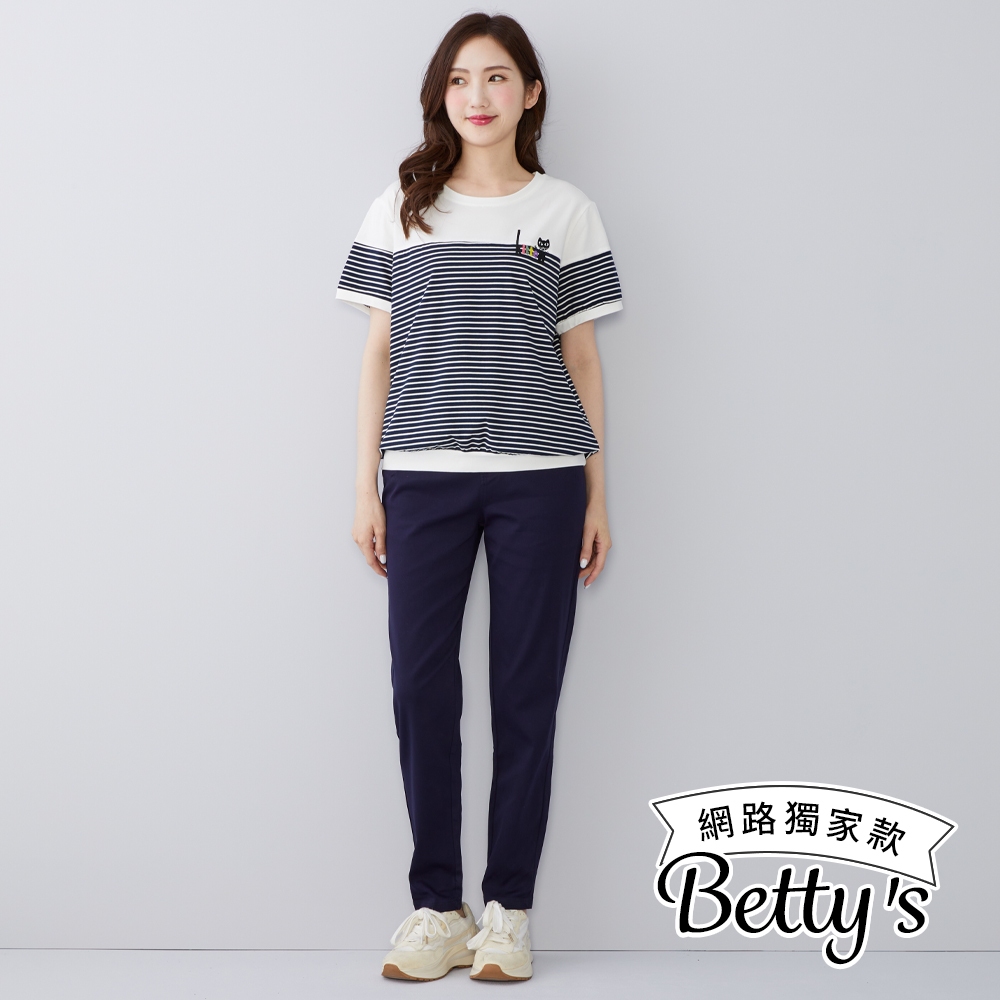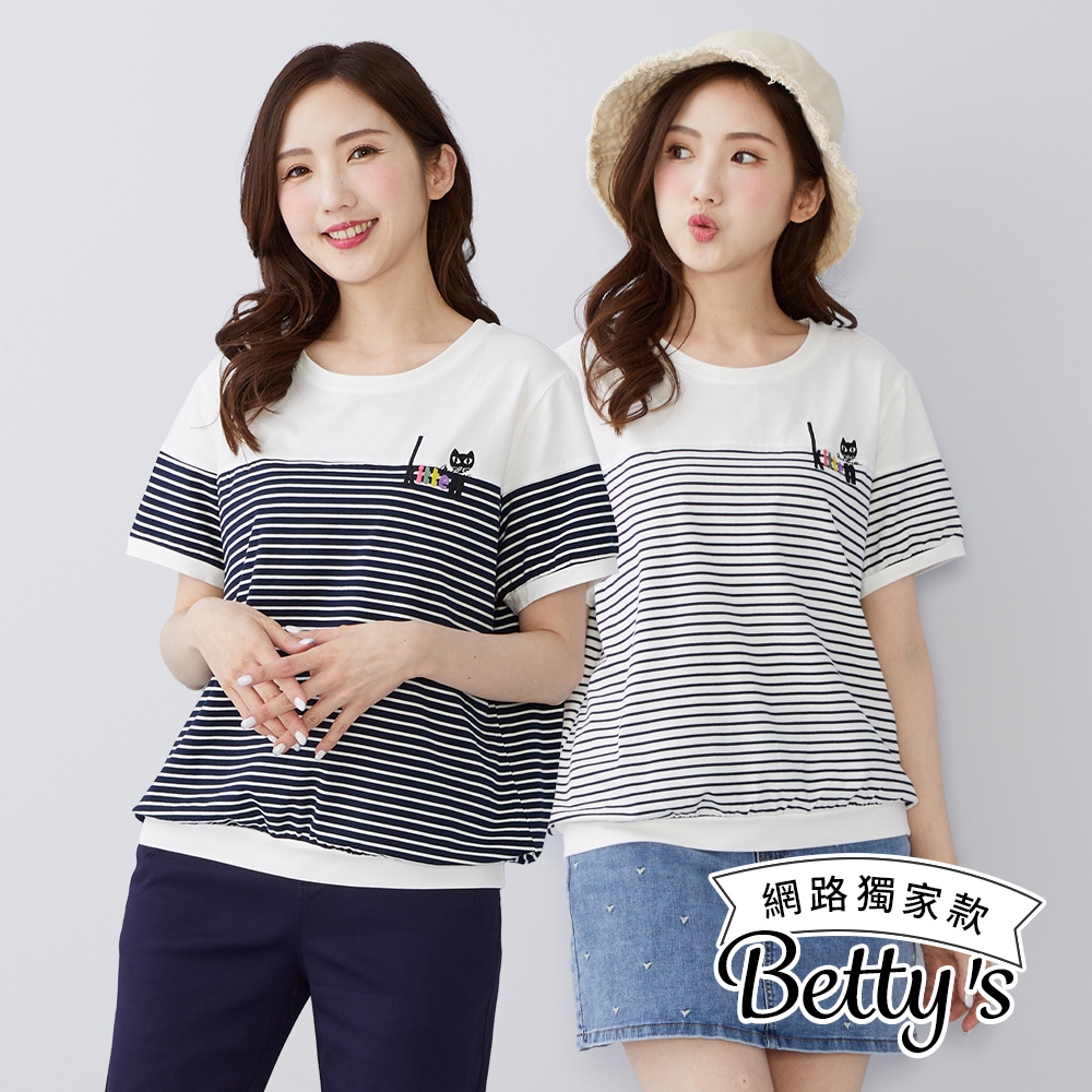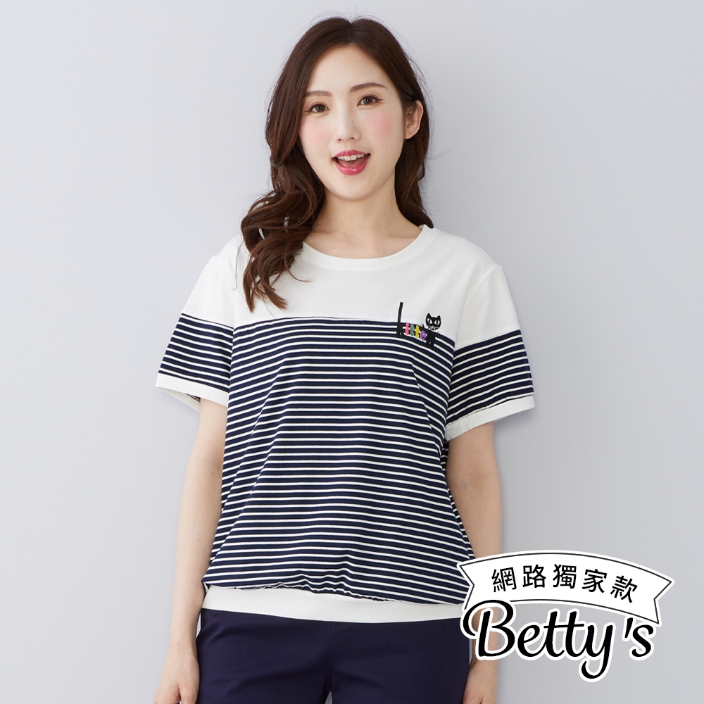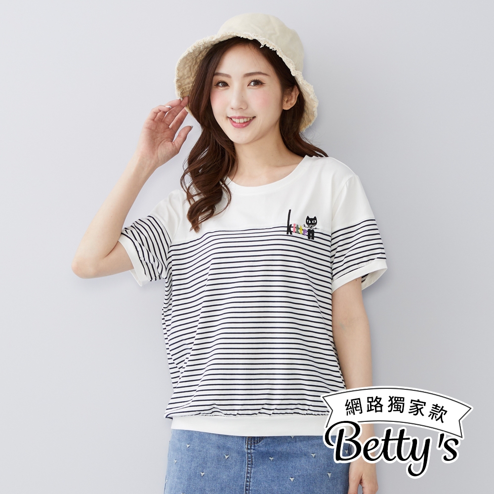 betty’s貝蒂思(50)貓咪繡花條紋涼感百搭上衣(共二色)白色|藍色T-shirtsbetty’s貝蒂思