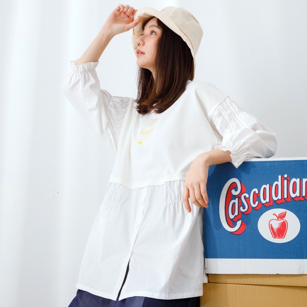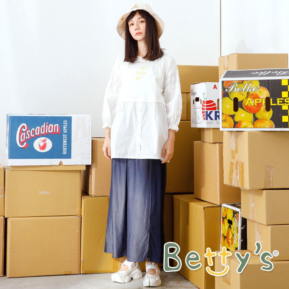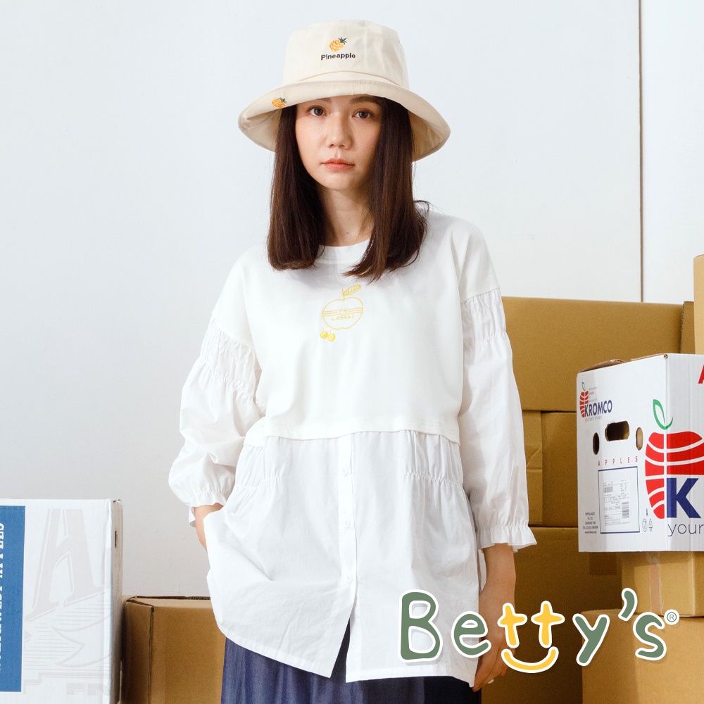 betty’s貝蒂思(11)拼接假兩件蘋果T-shirt (白色)白色,L|白色,MT-shirtsbetty’s貝蒂思