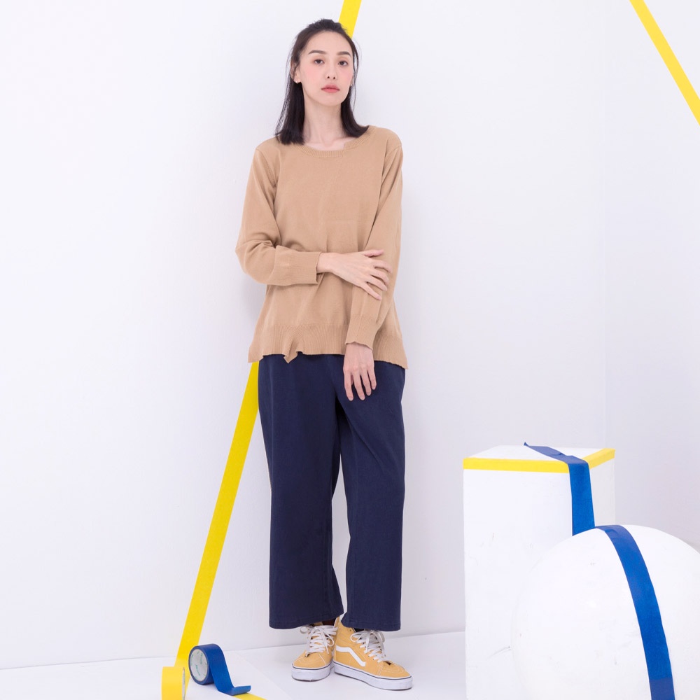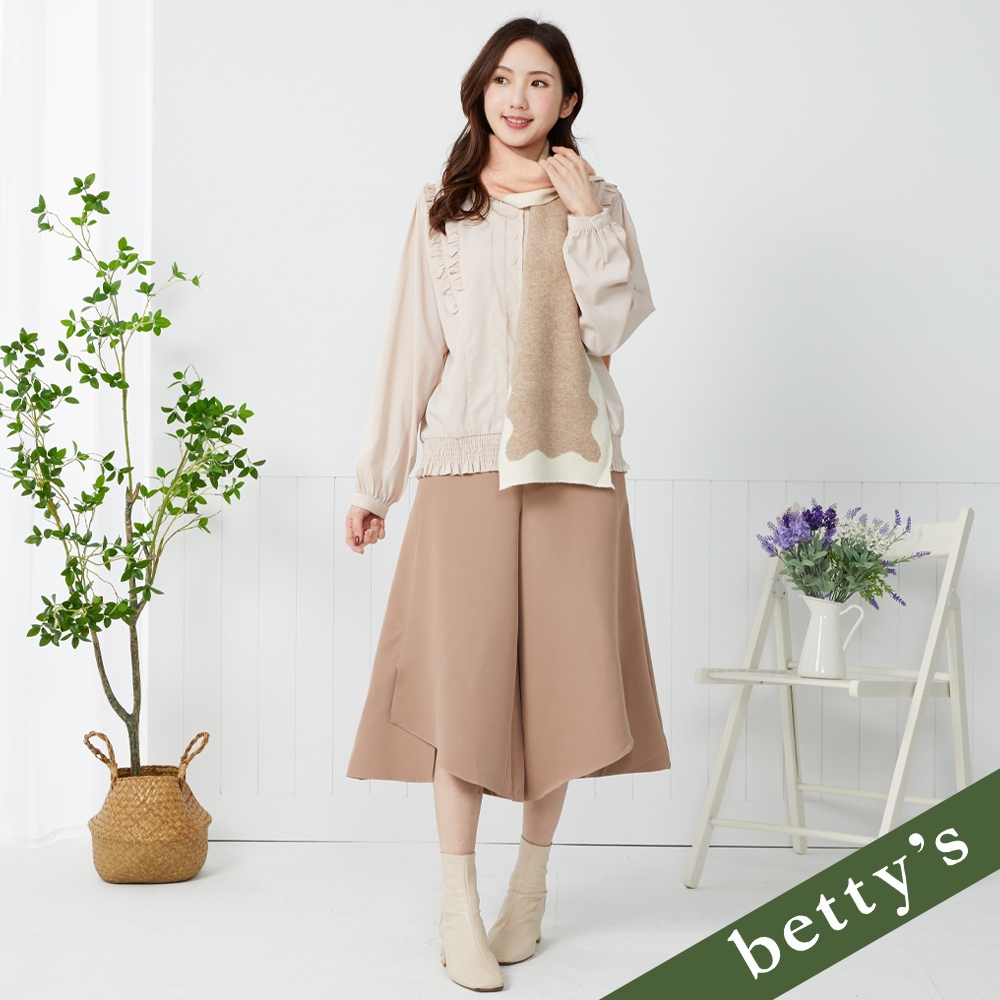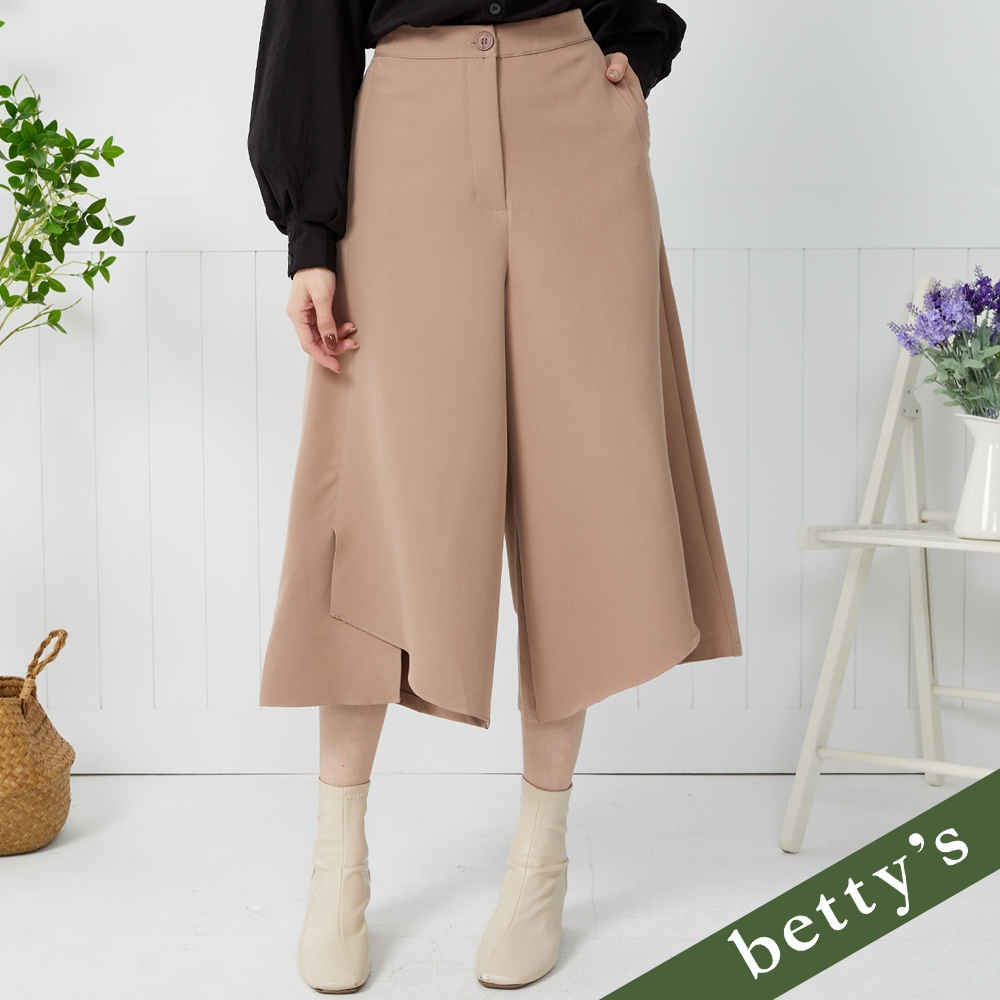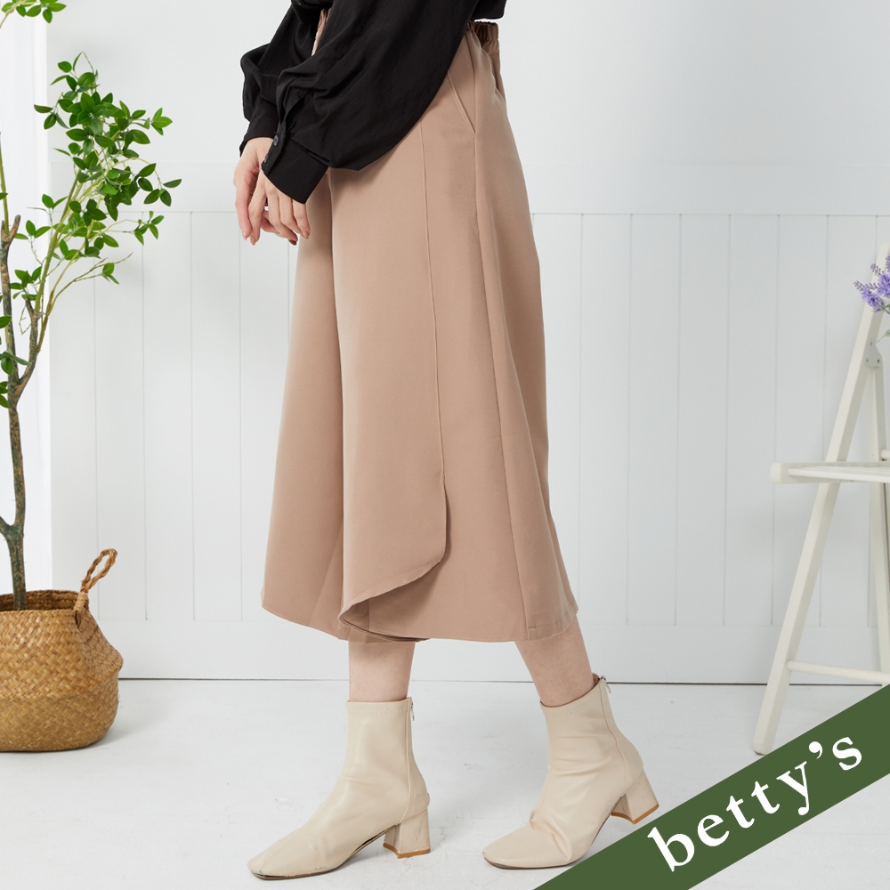 betty’s貝蒂思(35)腰鬆緊素面不對稱開衩寬褲(卡其)卡其,M|卡其,L|卡其,XLPantsbetty’s貝蒂思