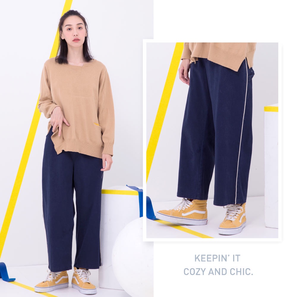 betty’s貝蒂思(05)側邊壓飾休閒寬褲(深藍)深藍,M|深藍,LPantsbetty’s貝蒂思