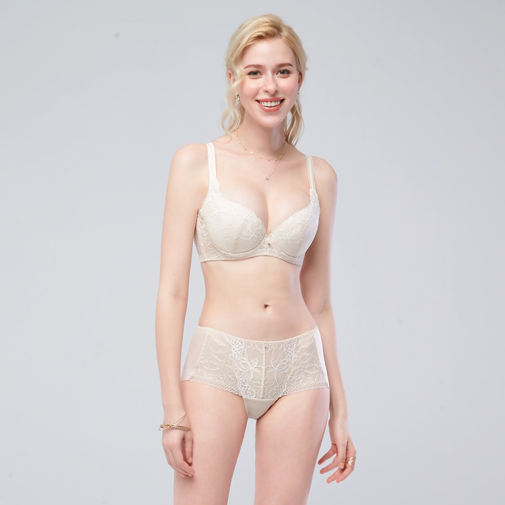 SWEAR 思薇爾 撩波 芙蓉光影系列 M-XL 蕾絲 中低腰 平口 女內褲 (燕麥膚)XL|L|MPanties SWEAR思薇爾_官方直營
