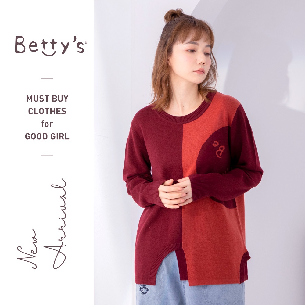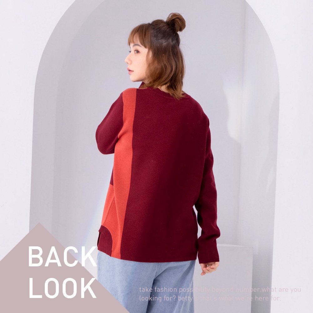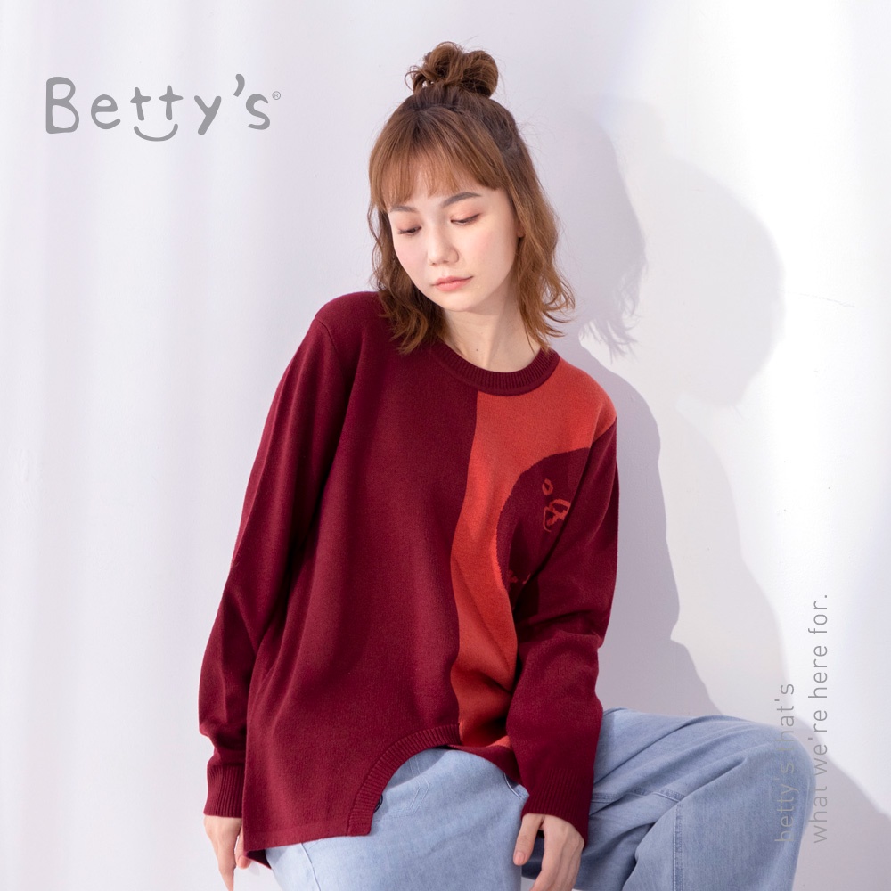 betty’s貝蒂思(05)圓領拼色質感毛衣(暗紅)暗紅,M|暗紅,L|暗紅,XLbetty’s貝蒂思