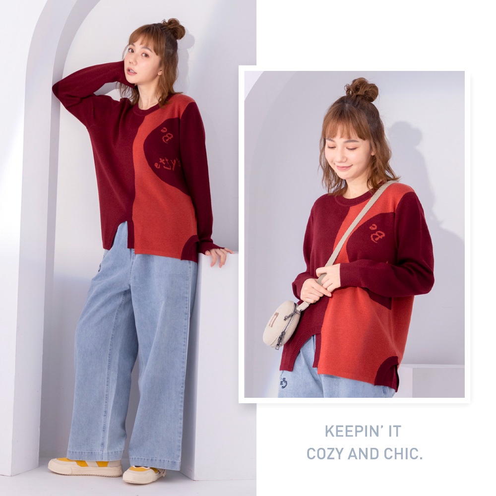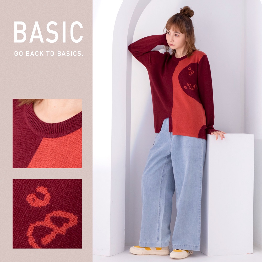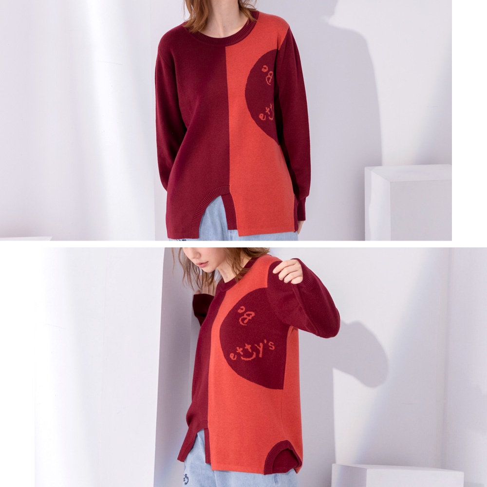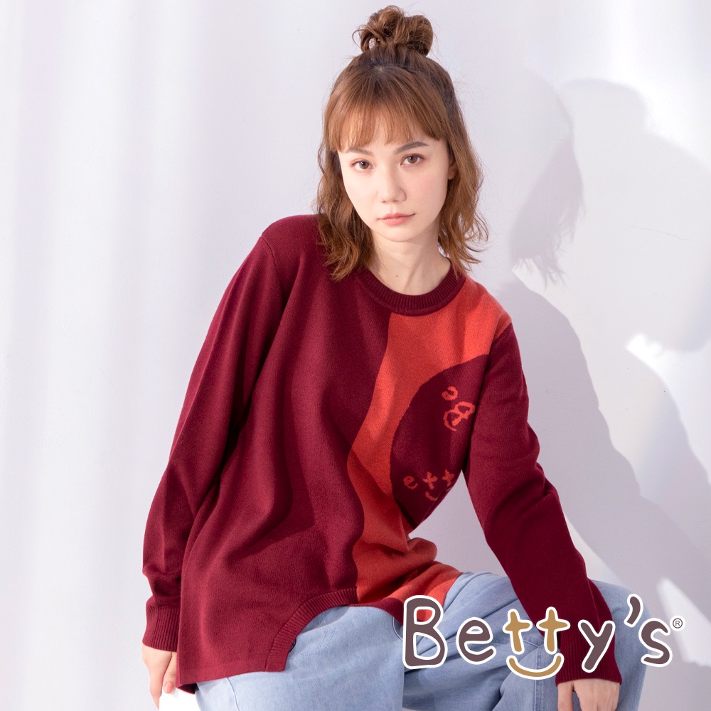 betty’s貝蒂思(05)圓領拼色質感毛衣(暗紅)暗紅,M|暗紅,L|暗紅,XLbetty’s貝蒂思