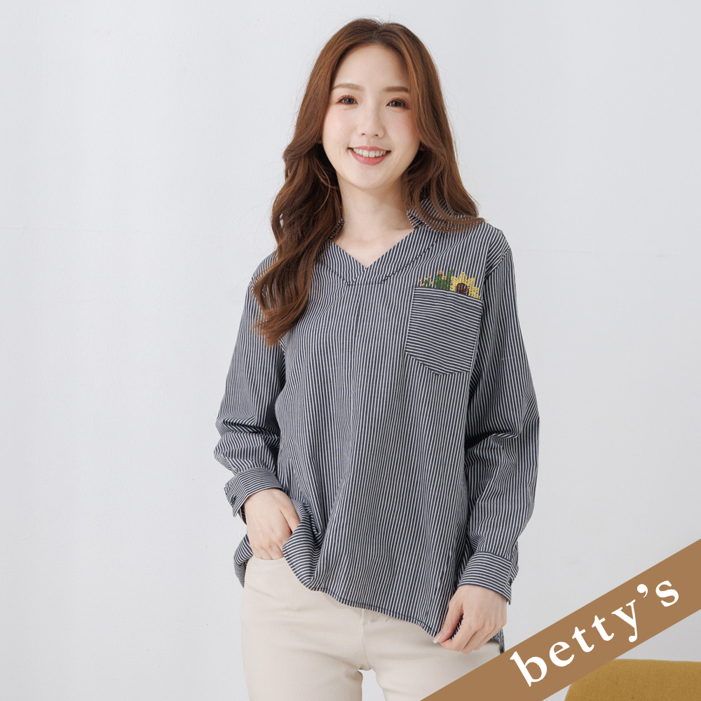 betty’s貝蒂思(45)偷窺貓咪刺繡造型領片襯衫(共二色)