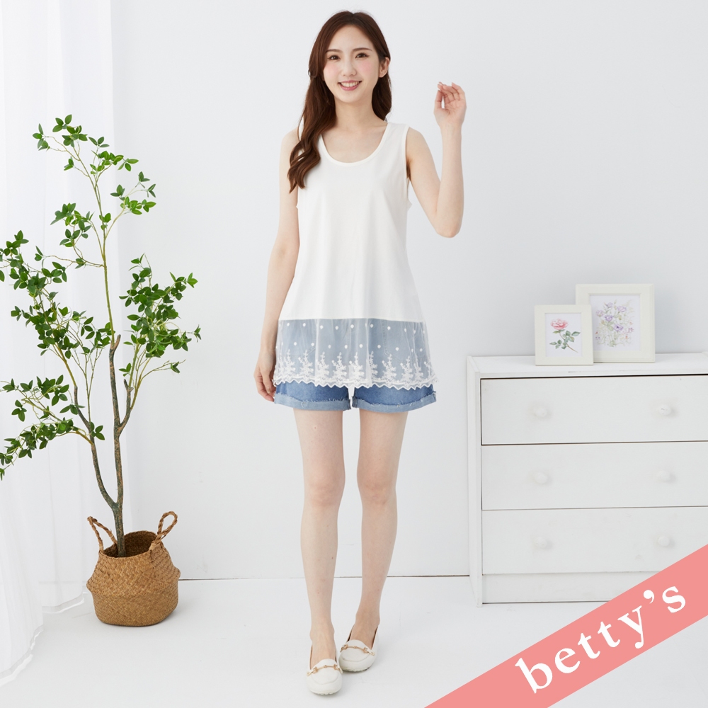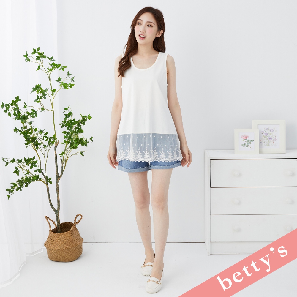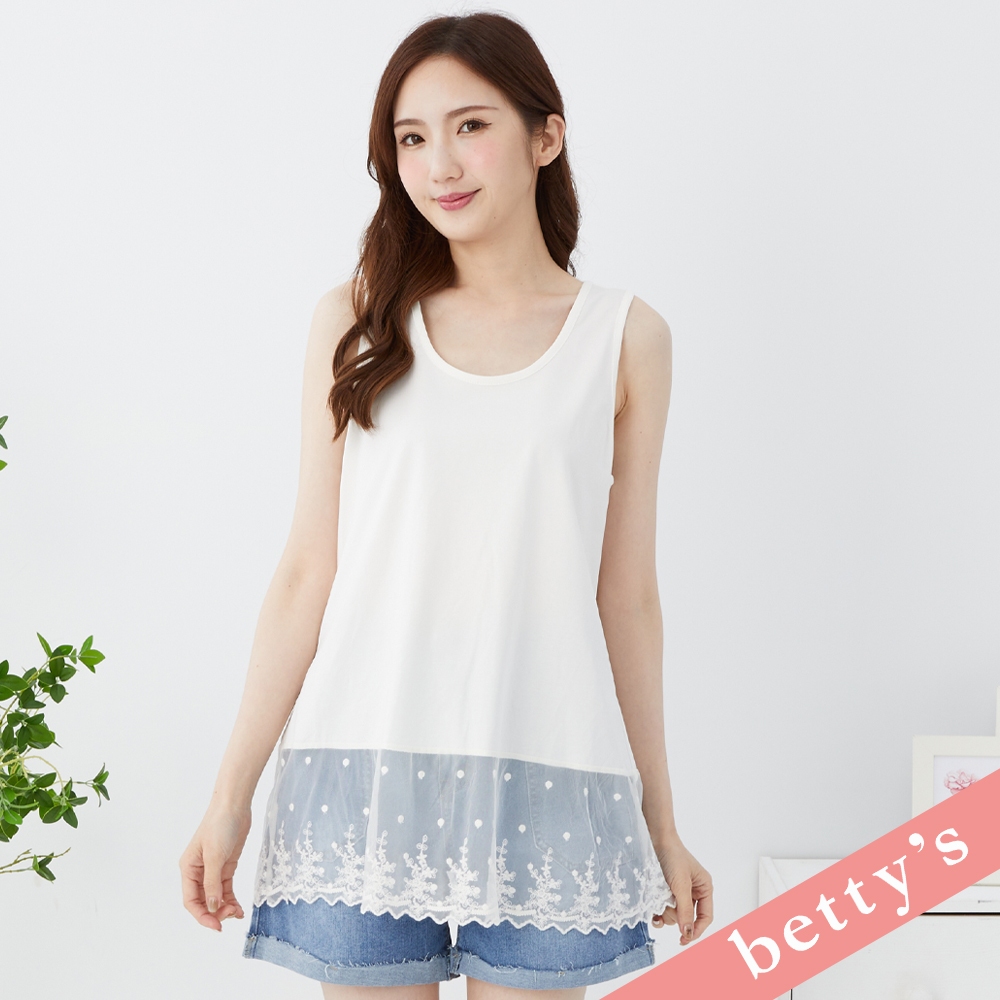 betty’s貝蒂思(31)下擺蕾絲拼接素色長版背心(白色)白色,M|白色,LT-shirtsbetty’s貝蒂思