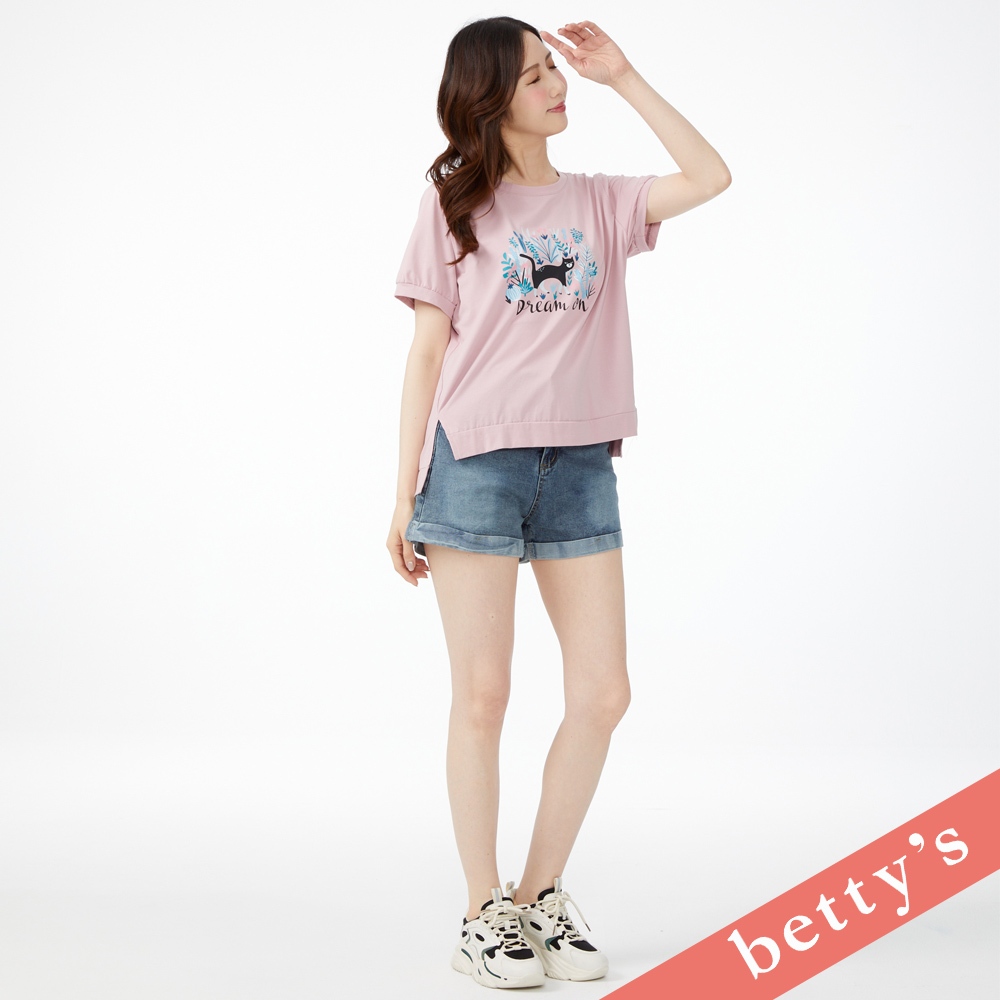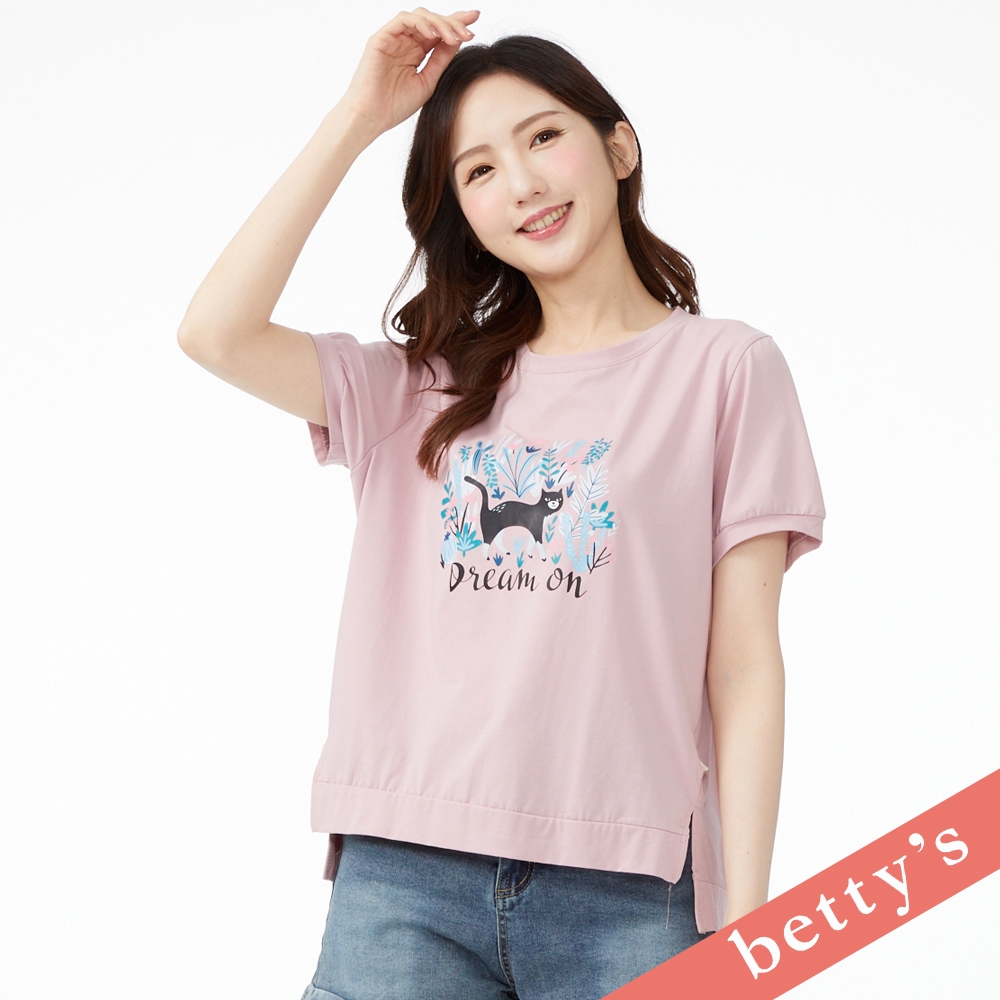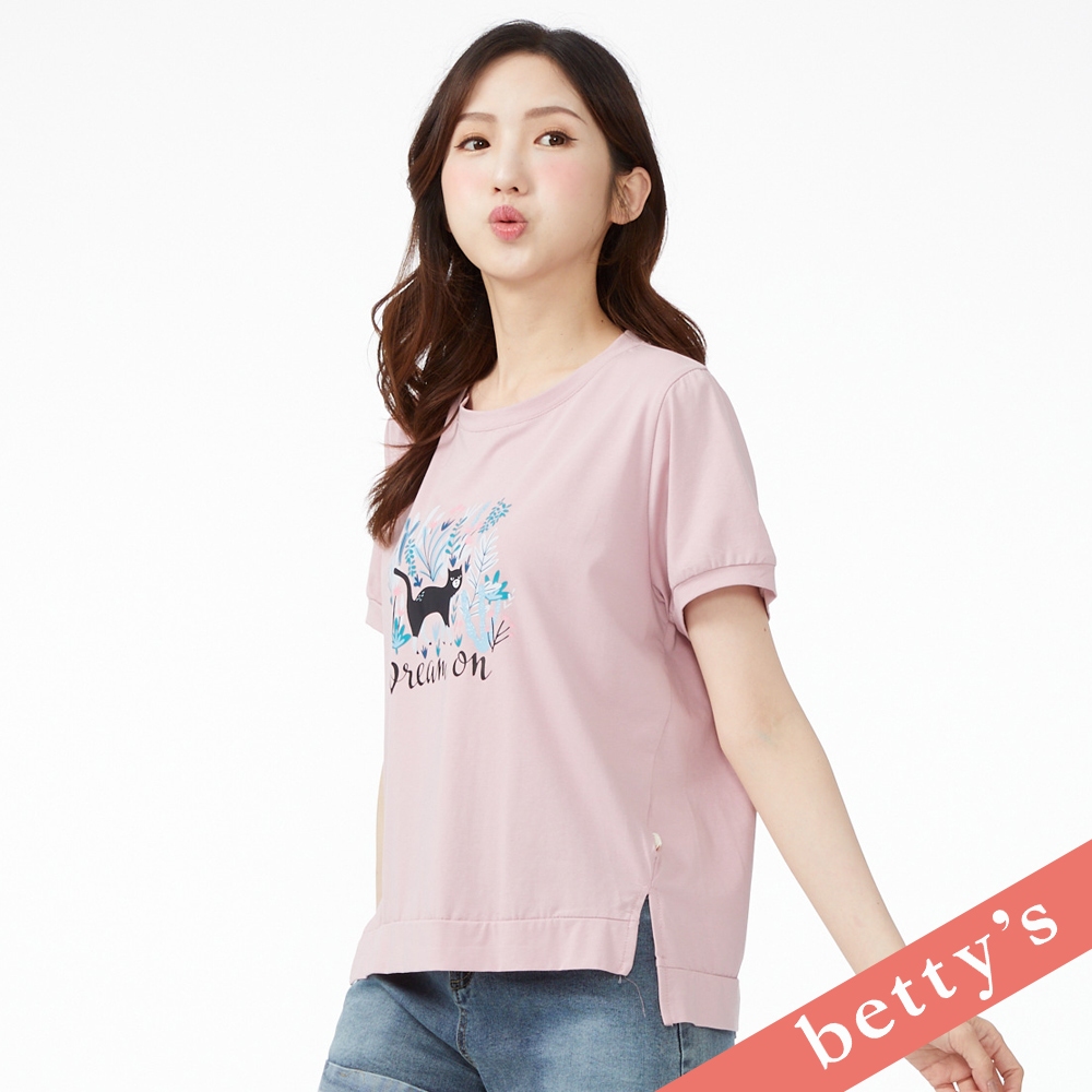 betty’s貝蒂思(41)設計師手繪貓咪印花短袖T-shirt(粉色)粉色,M|粉色,L|粉色,XLT-shirtsbetty’s貝蒂思