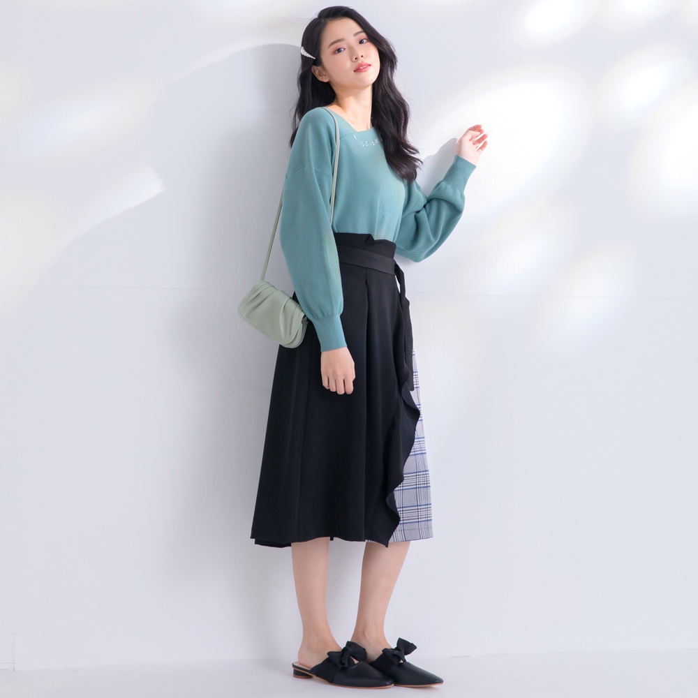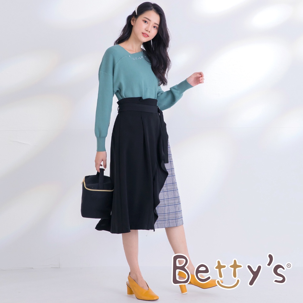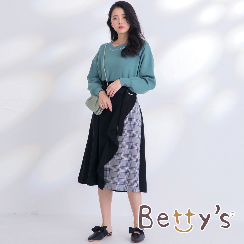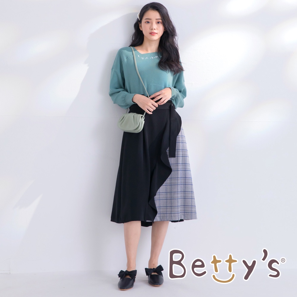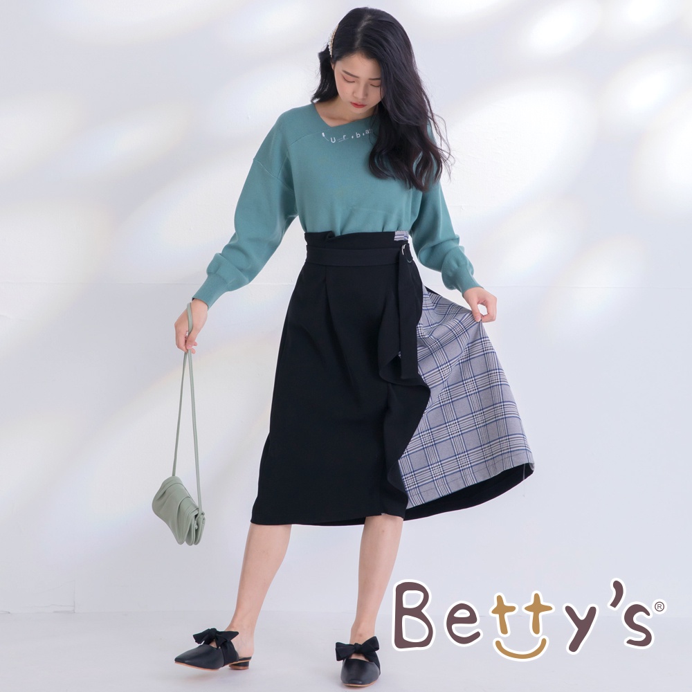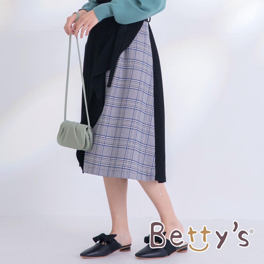 betty’s貝蒂思(05)千鳥格拼接長版荷葉裙(黑色)黑色,M|黑色,Lbetty’s貝蒂思