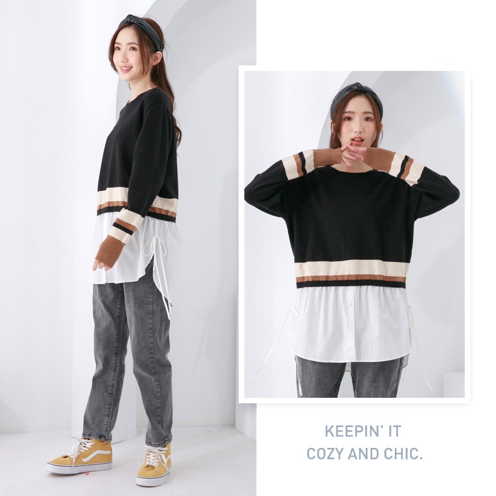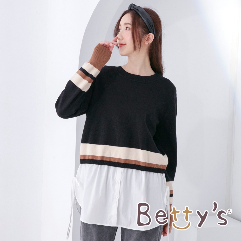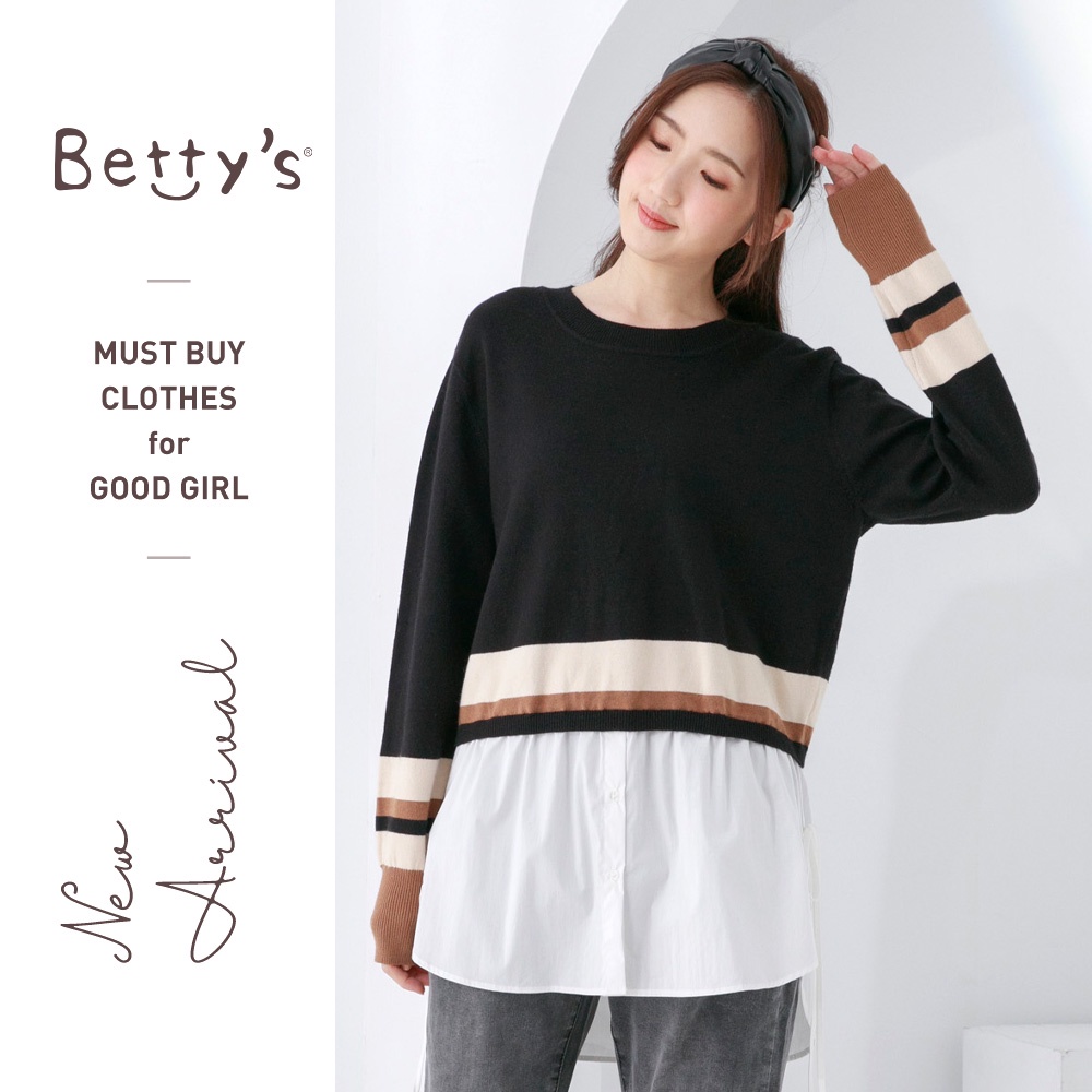 betty’s貝蒂思(05)襯衫下擺假兩件毛衣(黑色)黑色,M|黑色,Lbetty’s貝蒂思