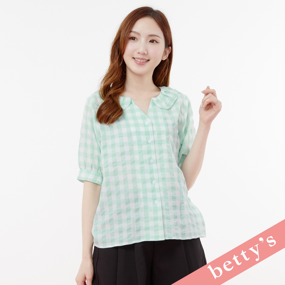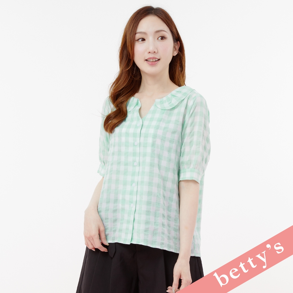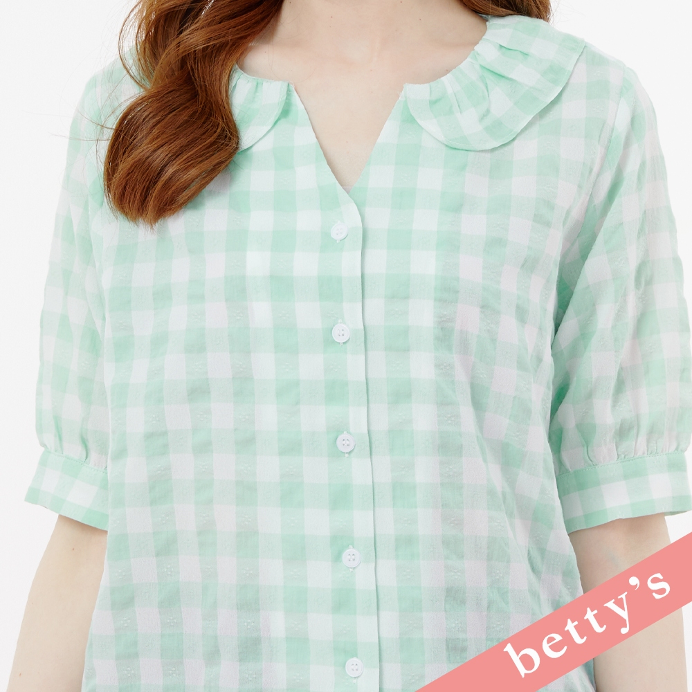 betty’s貝蒂思(31)荷葉邊領開襟格紋襯衫(粉綠)粉綠,M|粉綠,LShirts & Blousesbetty’s貝蒂思