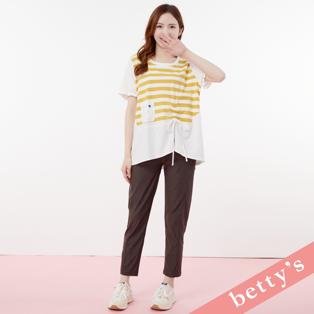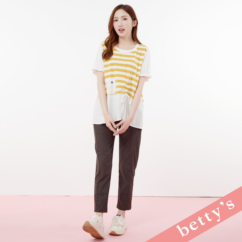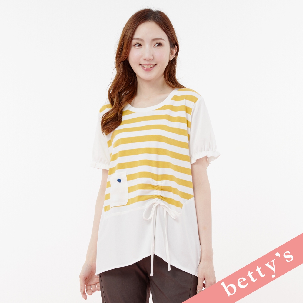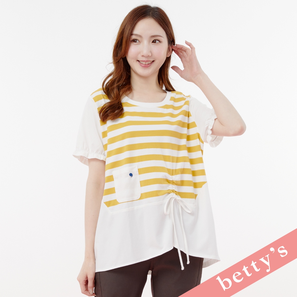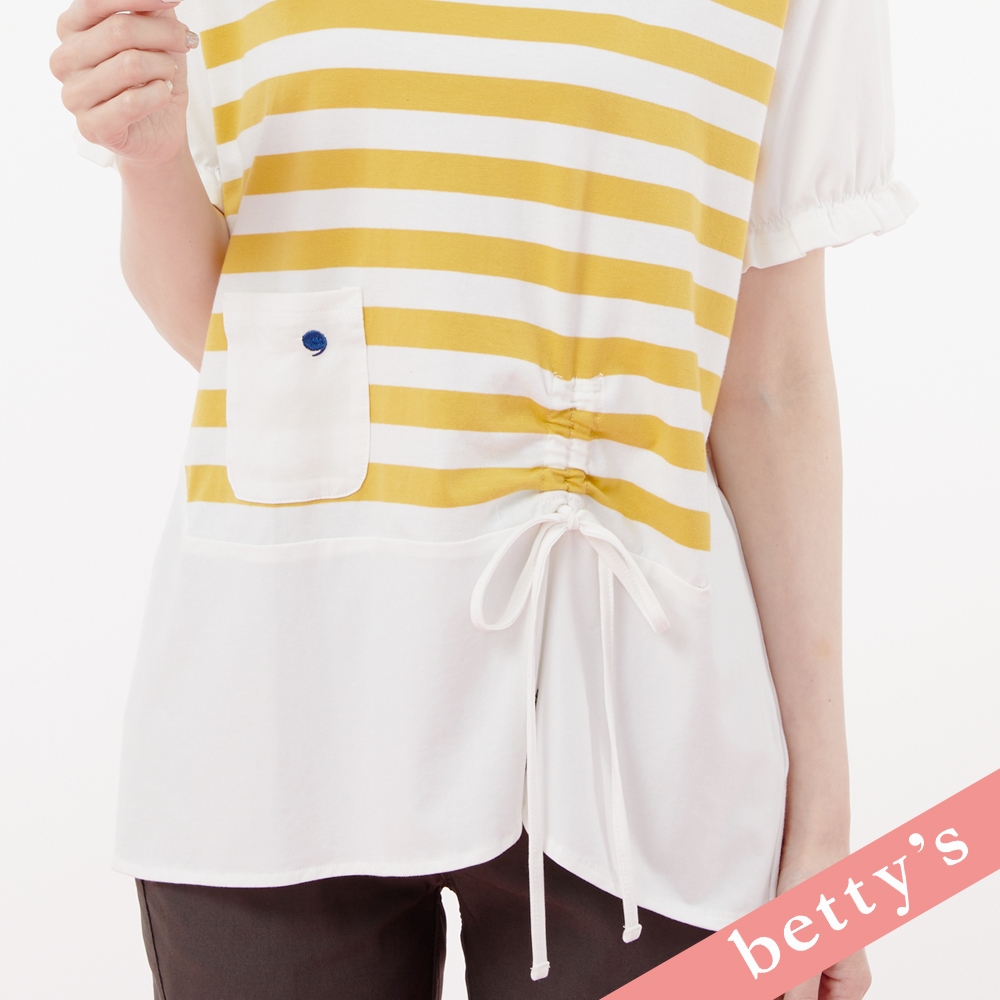 betty’s貝蒂思(31)條紋拼接造型抽繩長版T-shirt(黃色)黃色,M|黃色,L|黃色,XLT-shirtsbetty’s貝蒂思