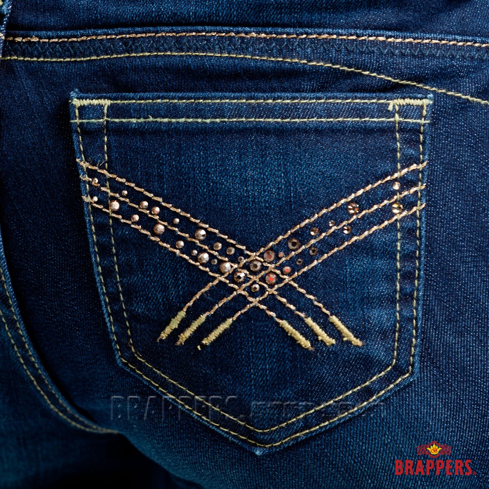 BRAPPERS 女款 新美腳Royal系列-彈性鑲鑽小喇叭褲-藍SS|S|XLPantsBRAPPERS 品牌旗艦店