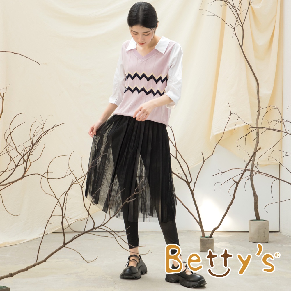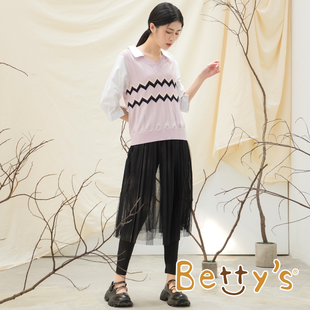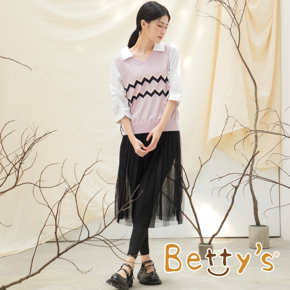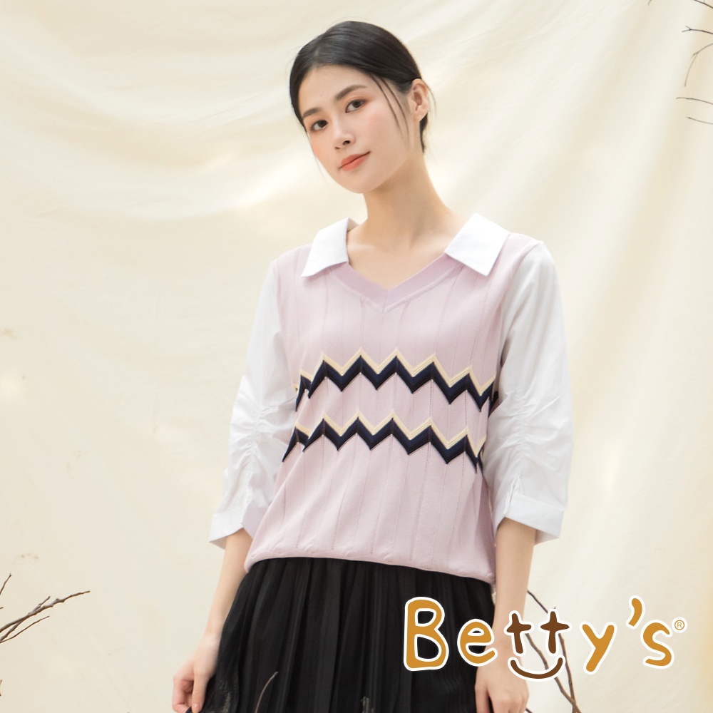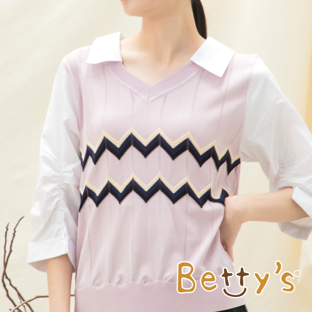 betty’s貝蒂思(15)鋸齒織紋假兩件針織線衫(淺粉)淺粉,M|淺粉,Lbetty’s貝蒂思