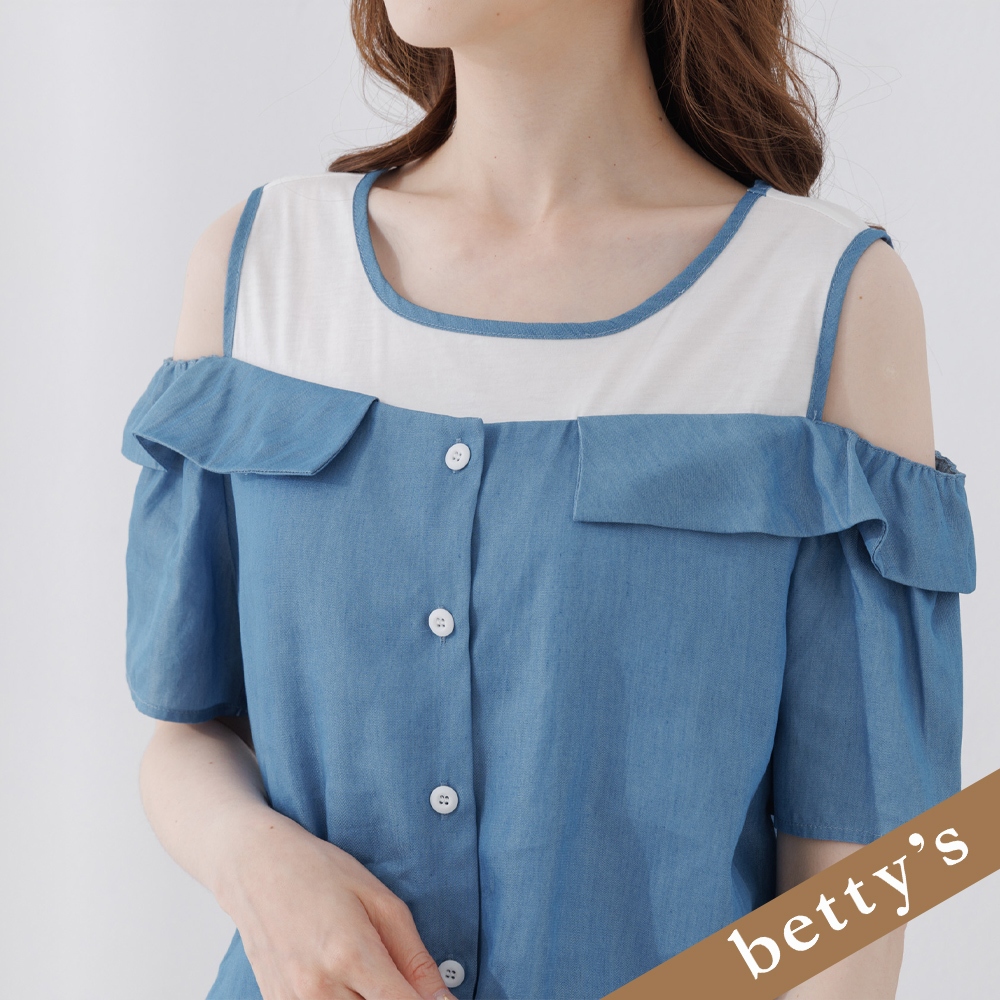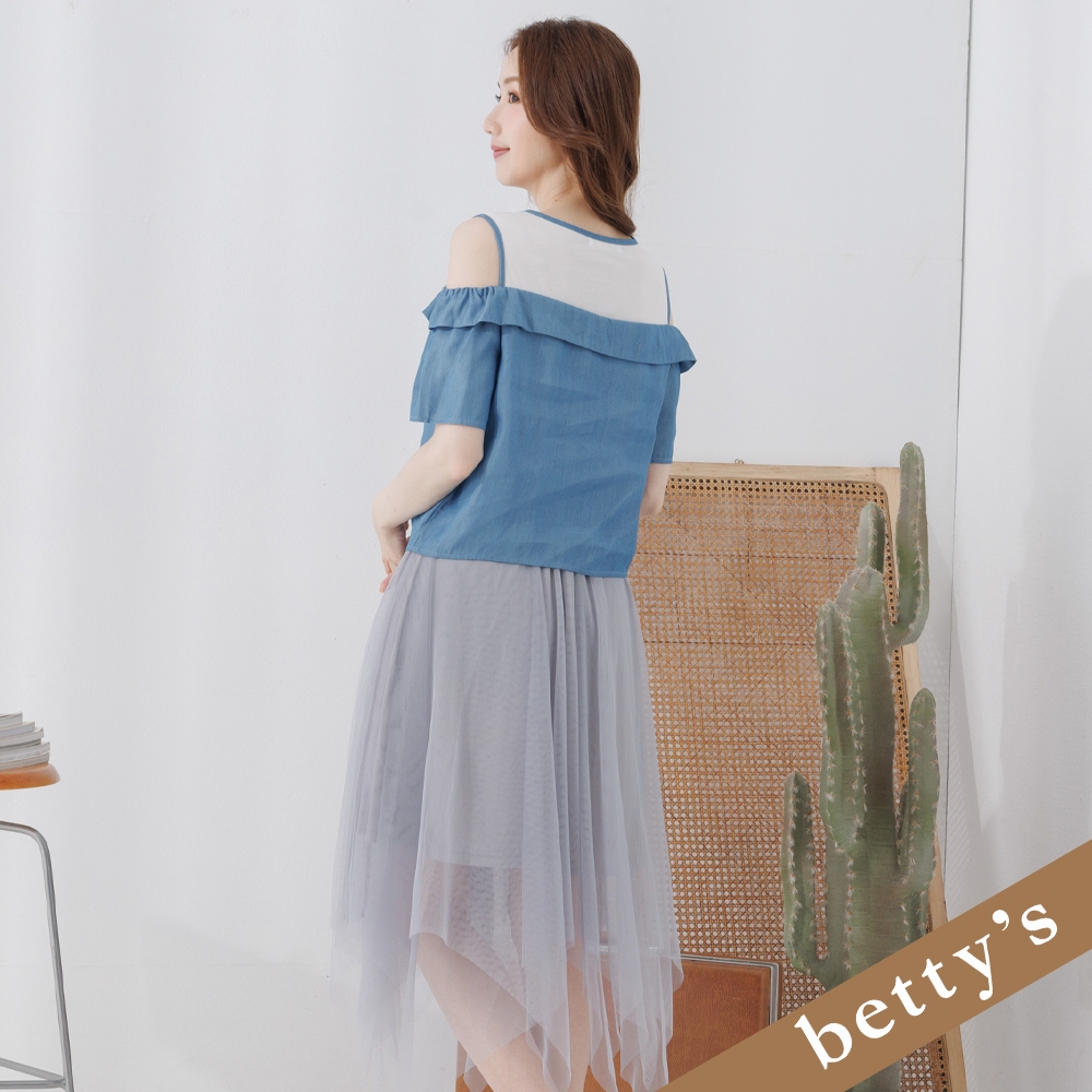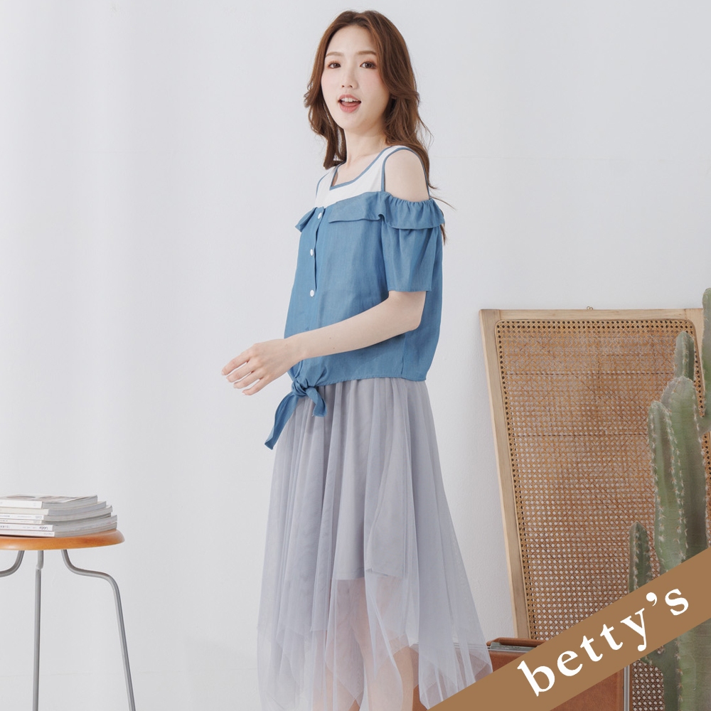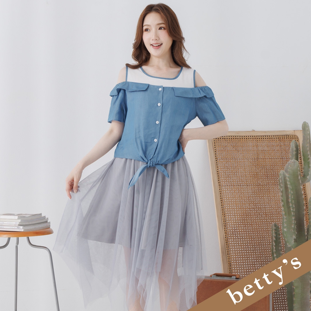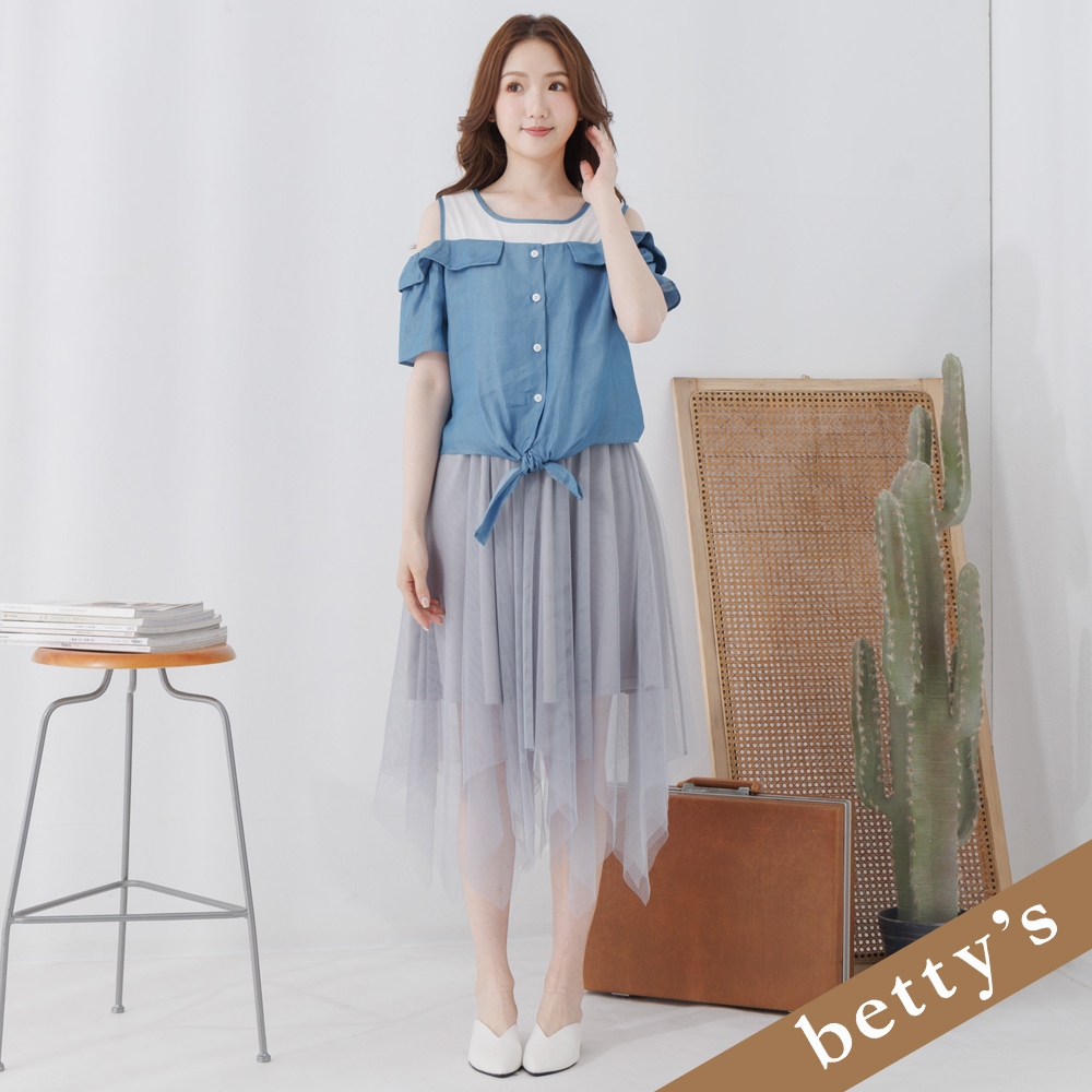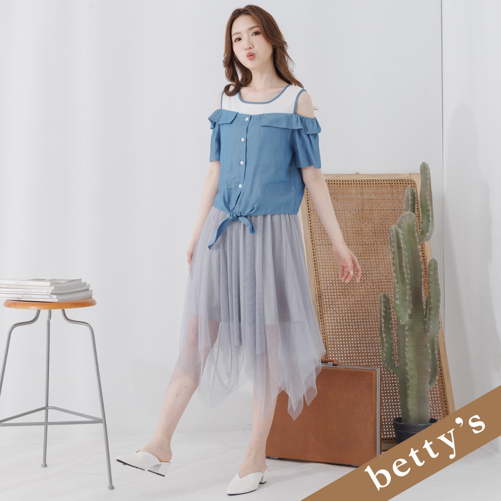betty’s貝蒂思(25)假兩件露肩撞色不規則下擺洋裝(灰色)灰色,L|灰色,Mbetty’s貝蒂思