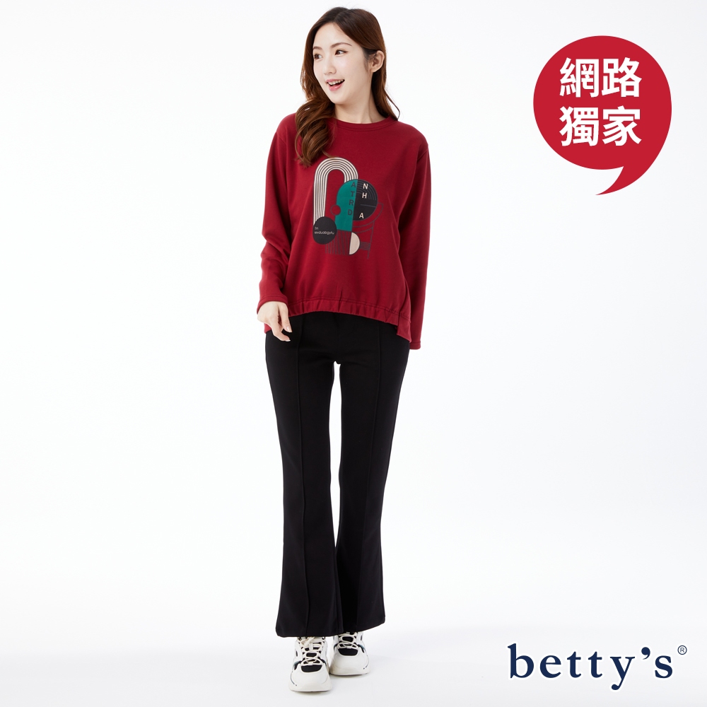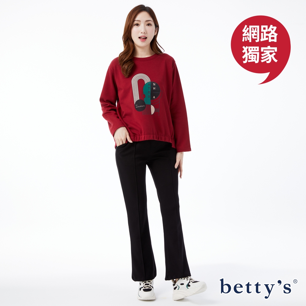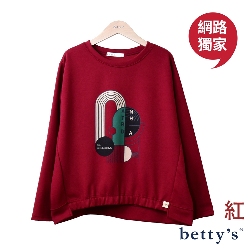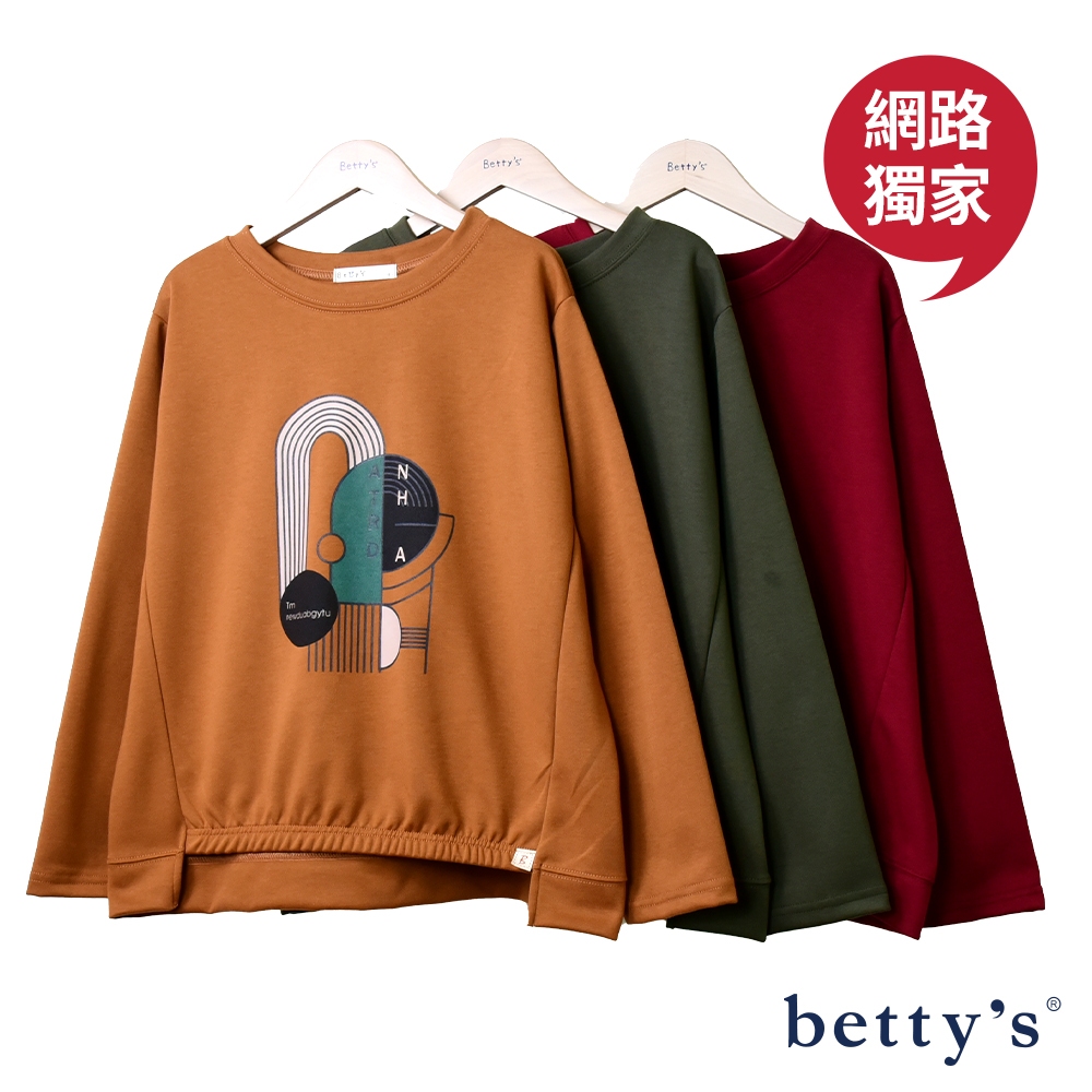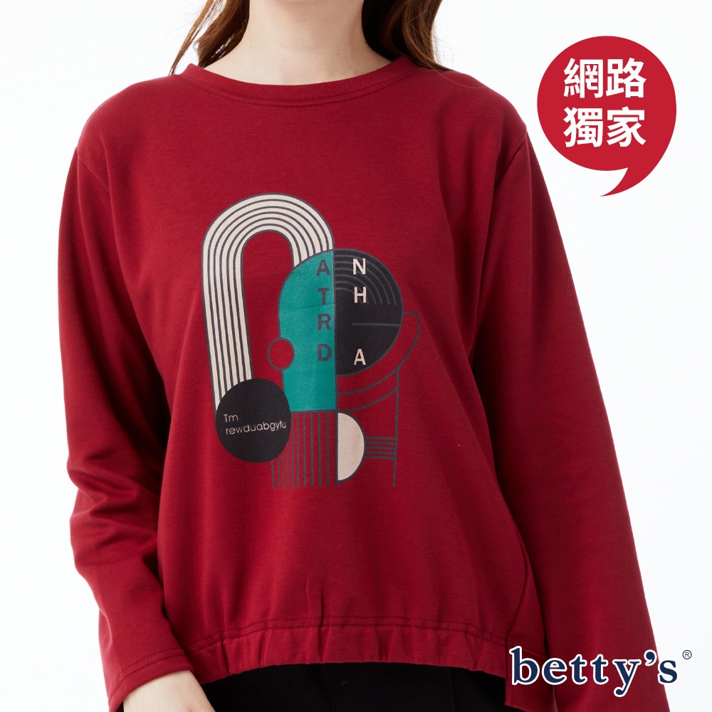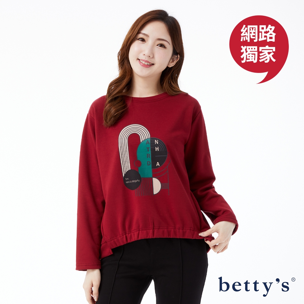 betty’s貝蒂思(23)撞色印花下擺抽皺圓領T-shirt(共三色)紅色,F|綠色,F|咖啡,FT-shirtsbetty’s貝蒂思