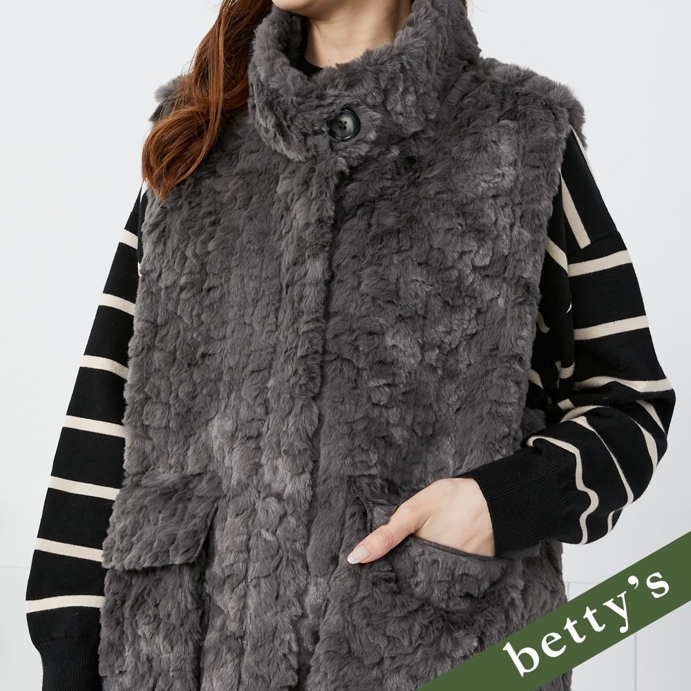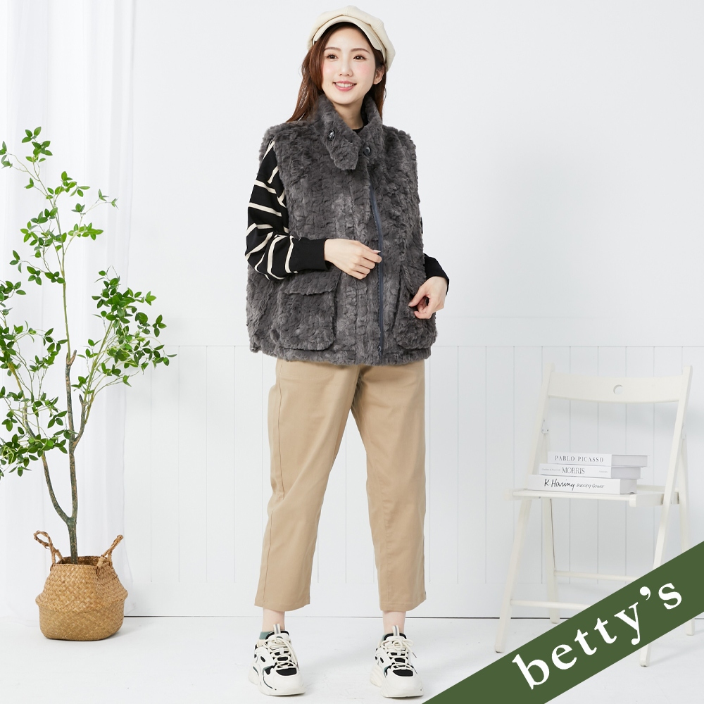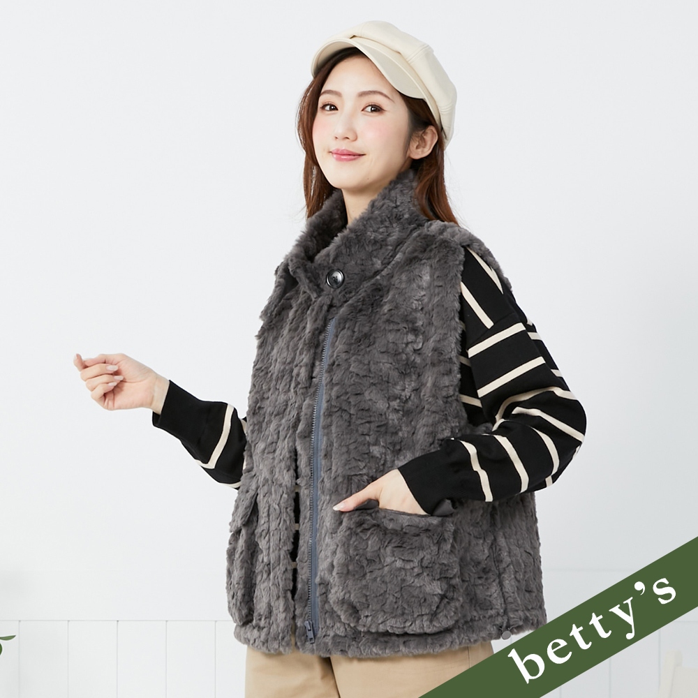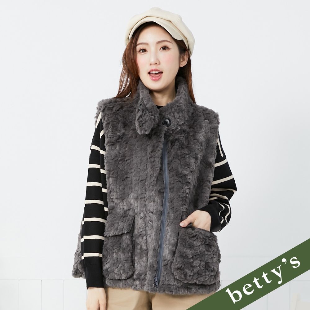 betty’s貝蒂思(35)毛絨雙口袋抽繩高領背心(深灰)深灰,M|深灰,LVestsbetty’s貝蒂思