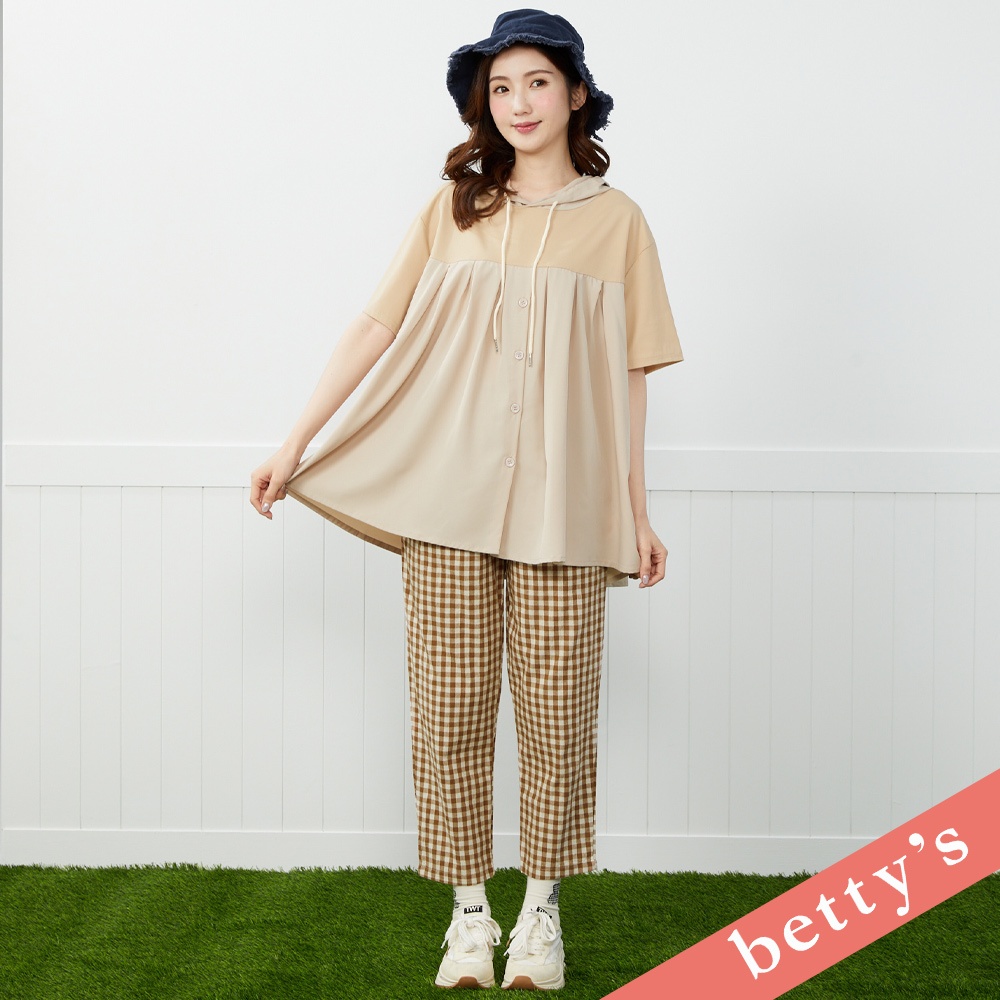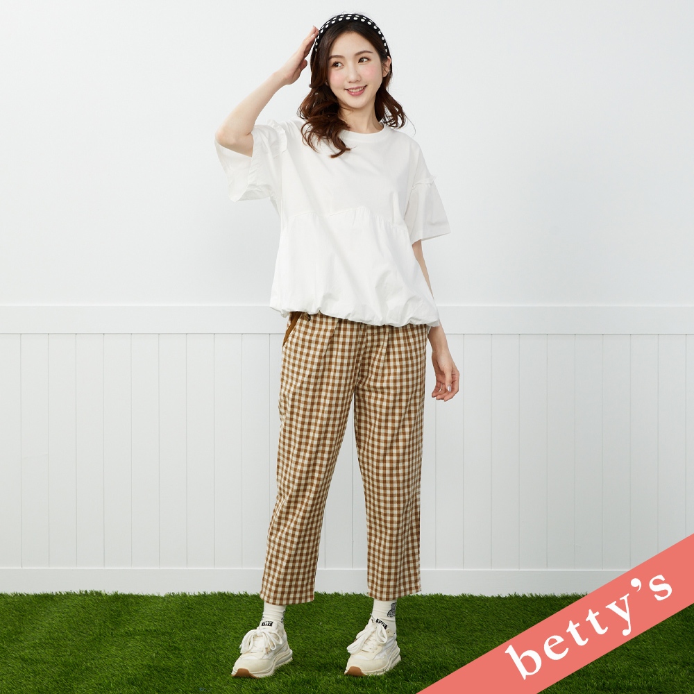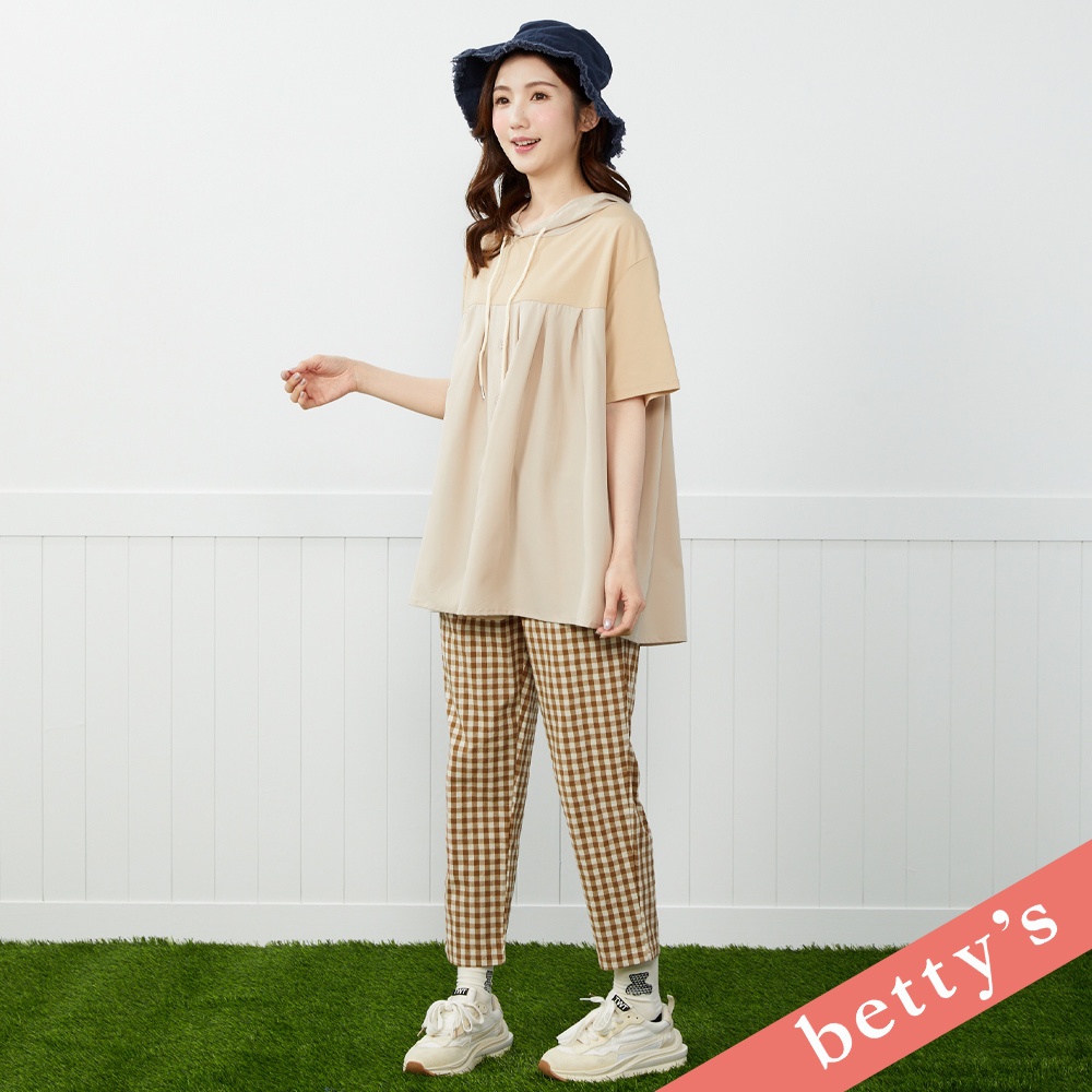 betty’s貝蒂思(41)格紋拼接下擺造型抽繩短袖T-shirt(湖水綠)湖水綠,M|湖水綠,LT-shirtsbetty’s貝蒂思