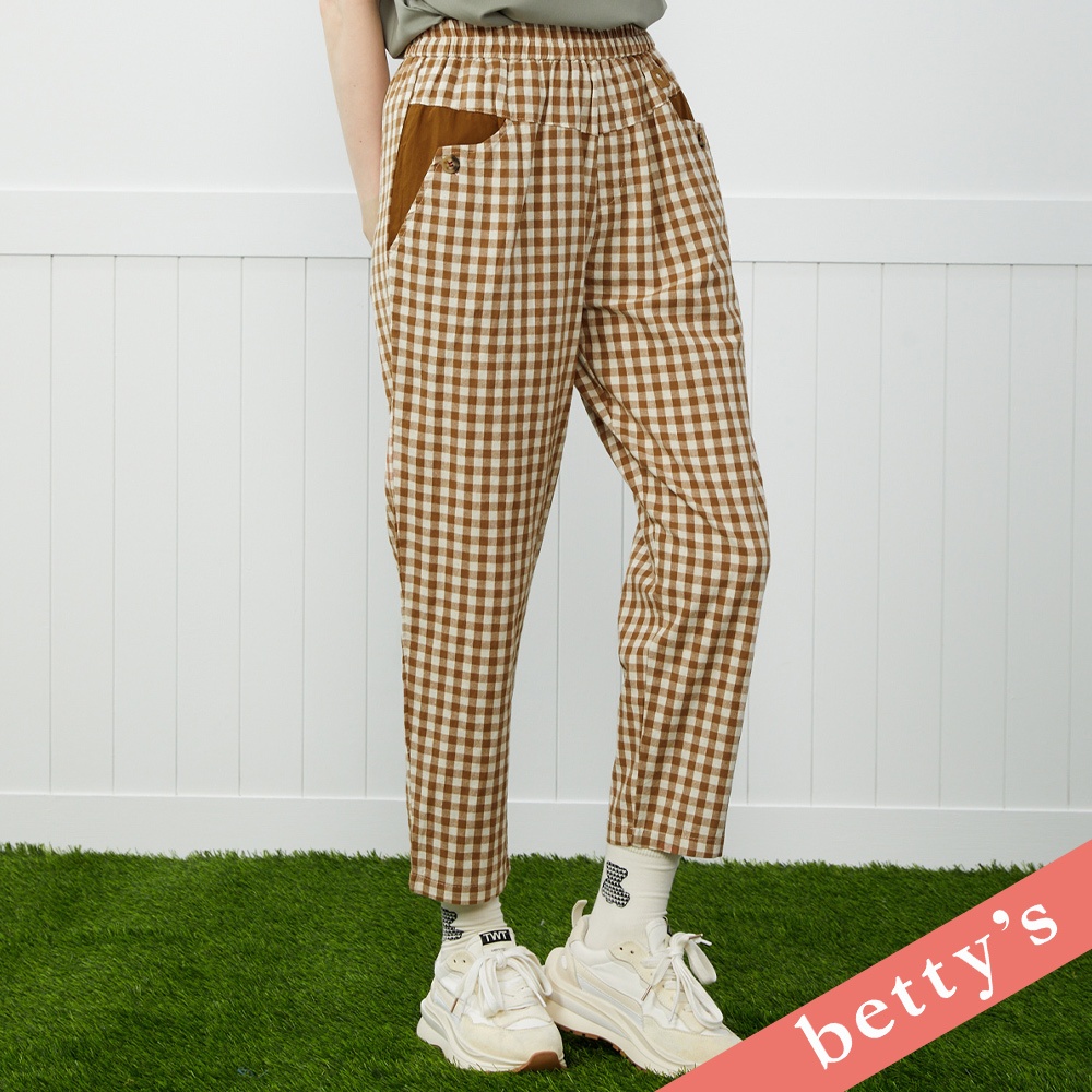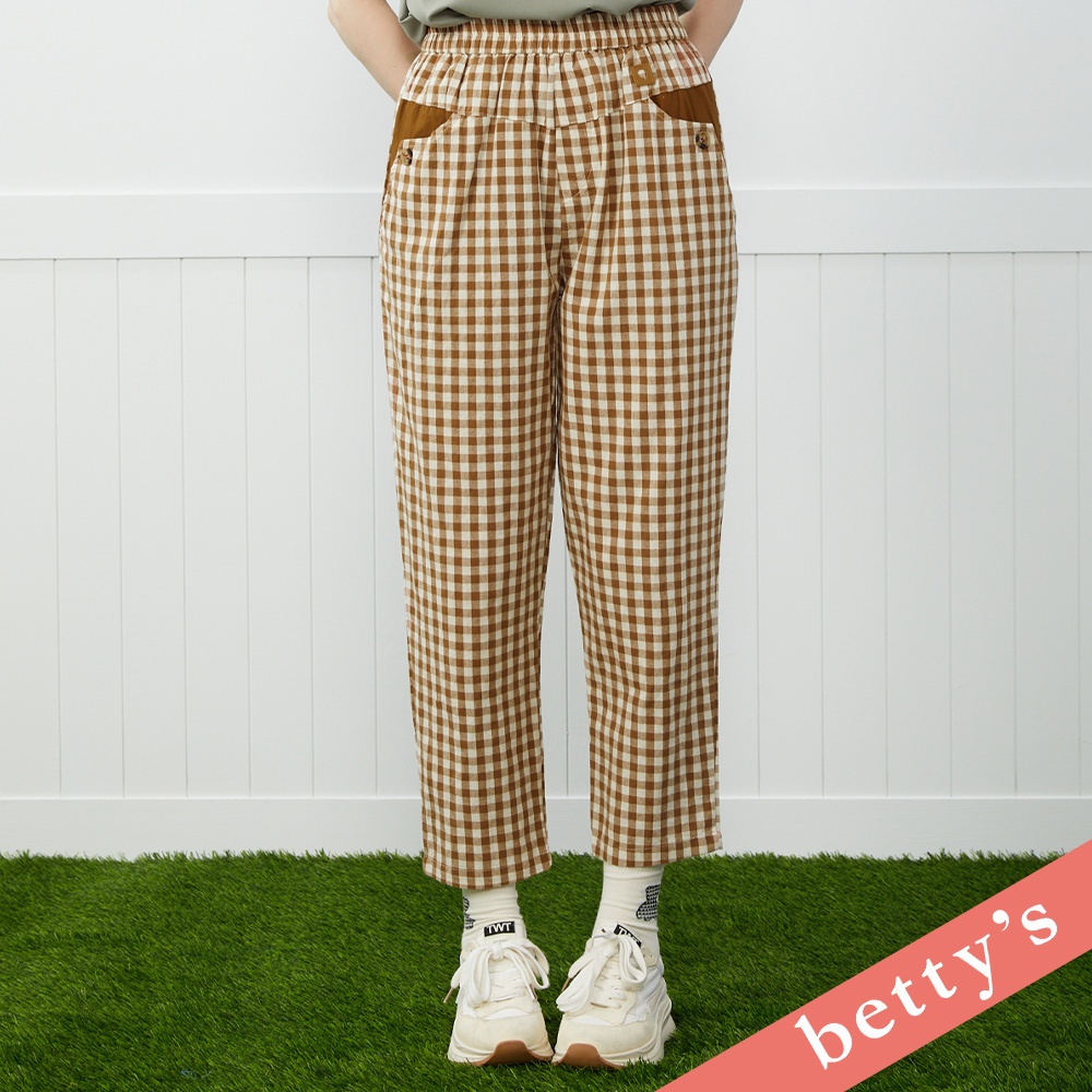 betty’s貝蒂思(41)格紋口袋拼接鈕釦休閒長褲(咖啡)咖啡,M|咖啡,LPantsbetty’s貝蒂思