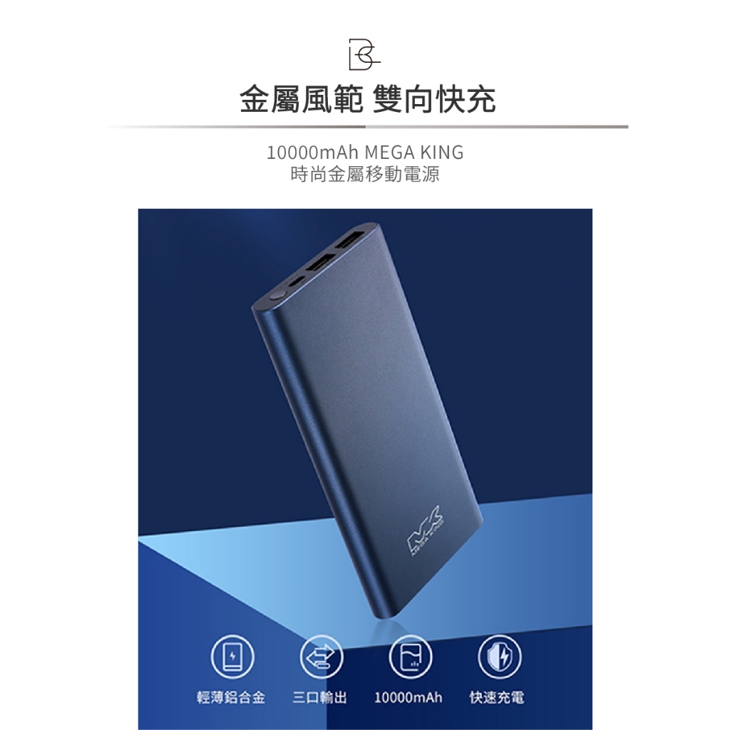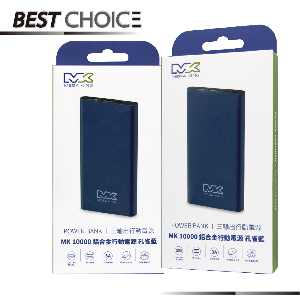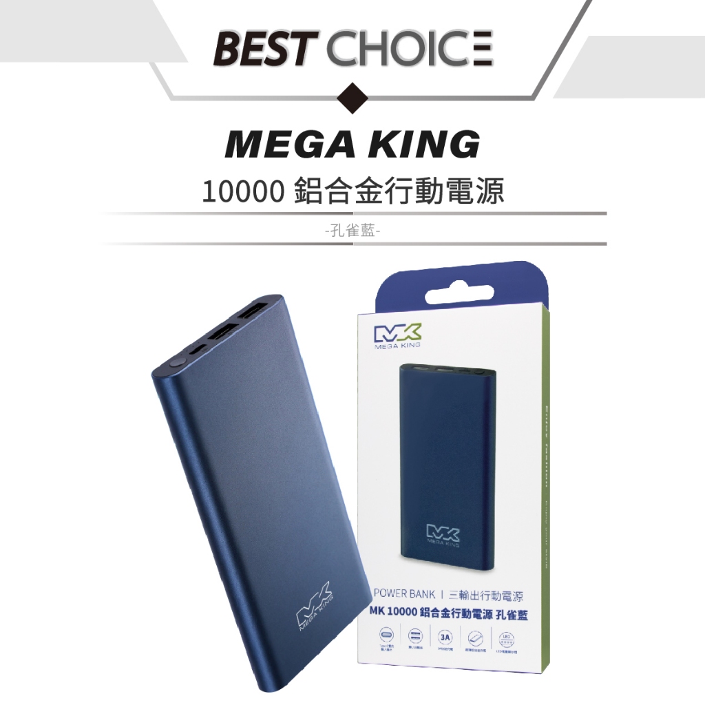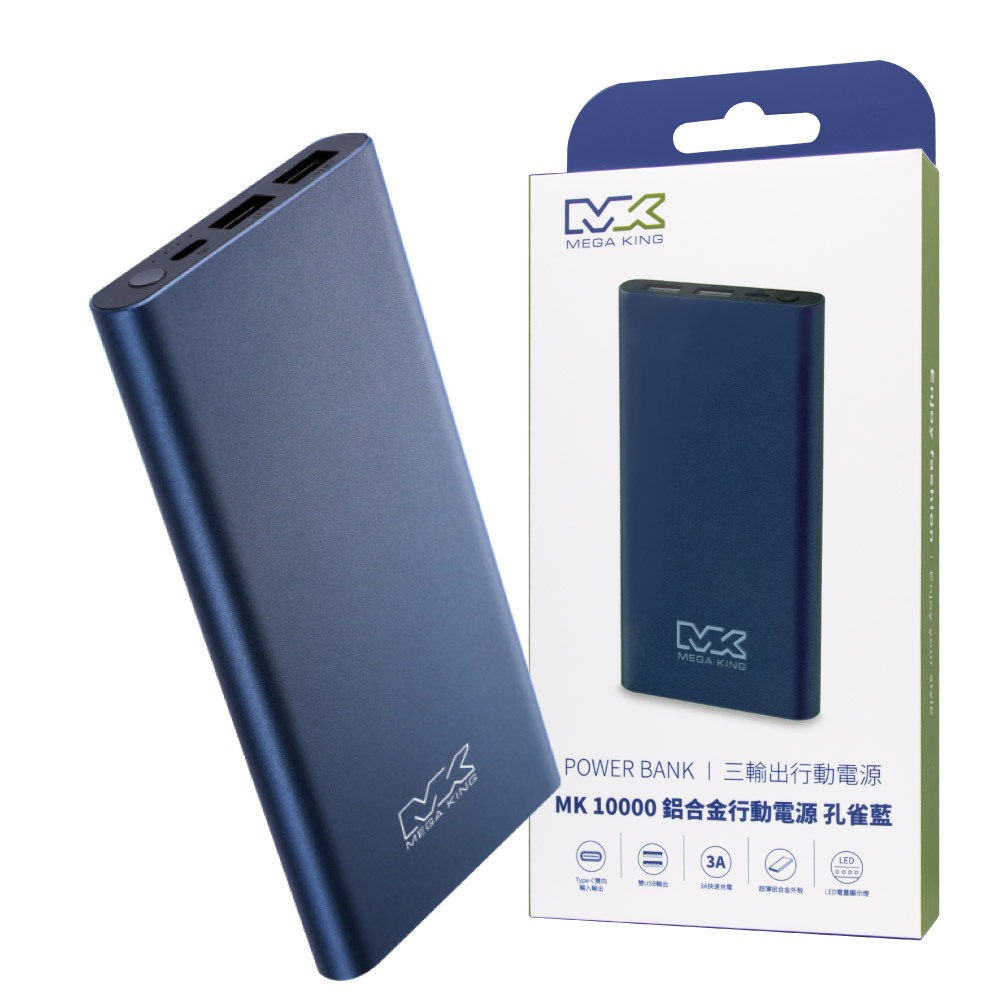 MEGA KING 神腦公司貨 10000mAh 鋁合金行動電源 – 孔雀藍【盒裝 / 保固一年】HB96 / 三口輸出藍色-盒裝Powerbanks & BatteriesBest Choice旗艦店