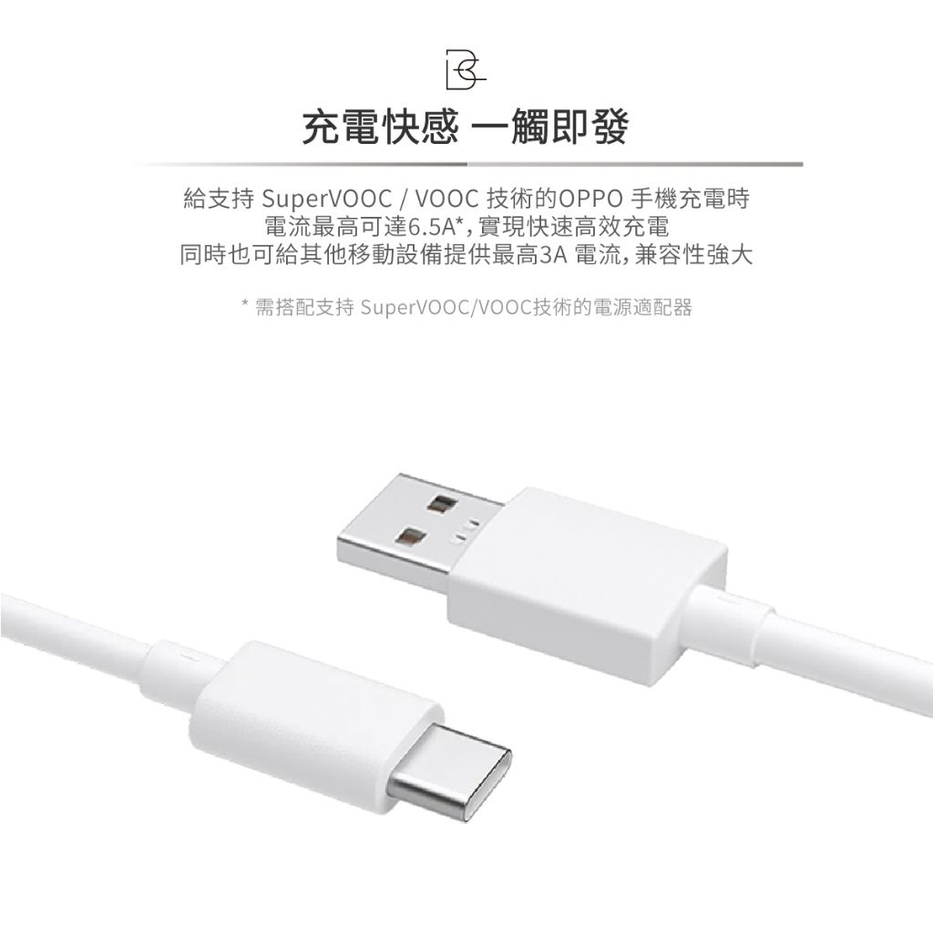 OPPO 原廠 SuperVOOC 65W USB-A to Type-C超級閃充線(6.5A,1m)【盒裝】DL129