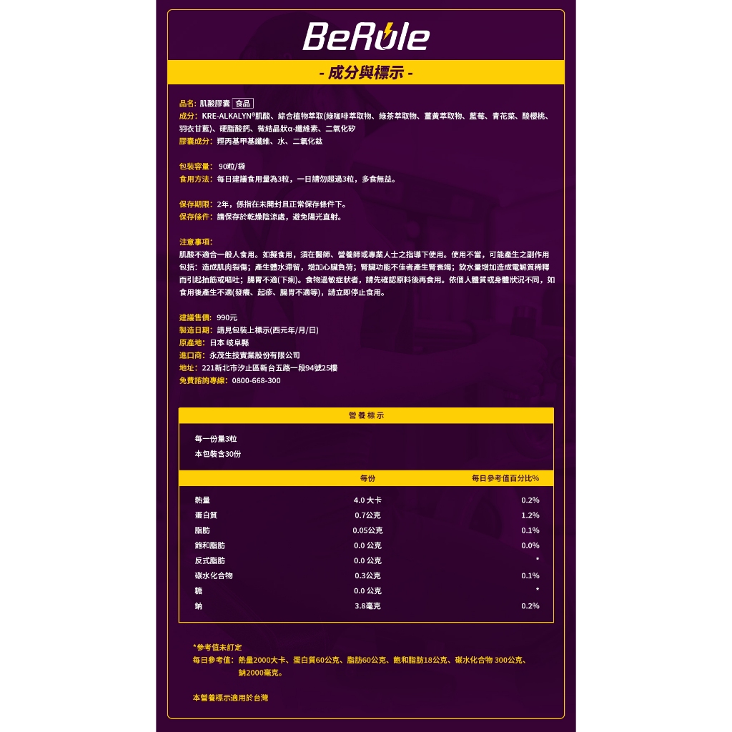 【BeRule】肌酸膠囊 90 粒/袋90粒/1袋FitnessBeRule