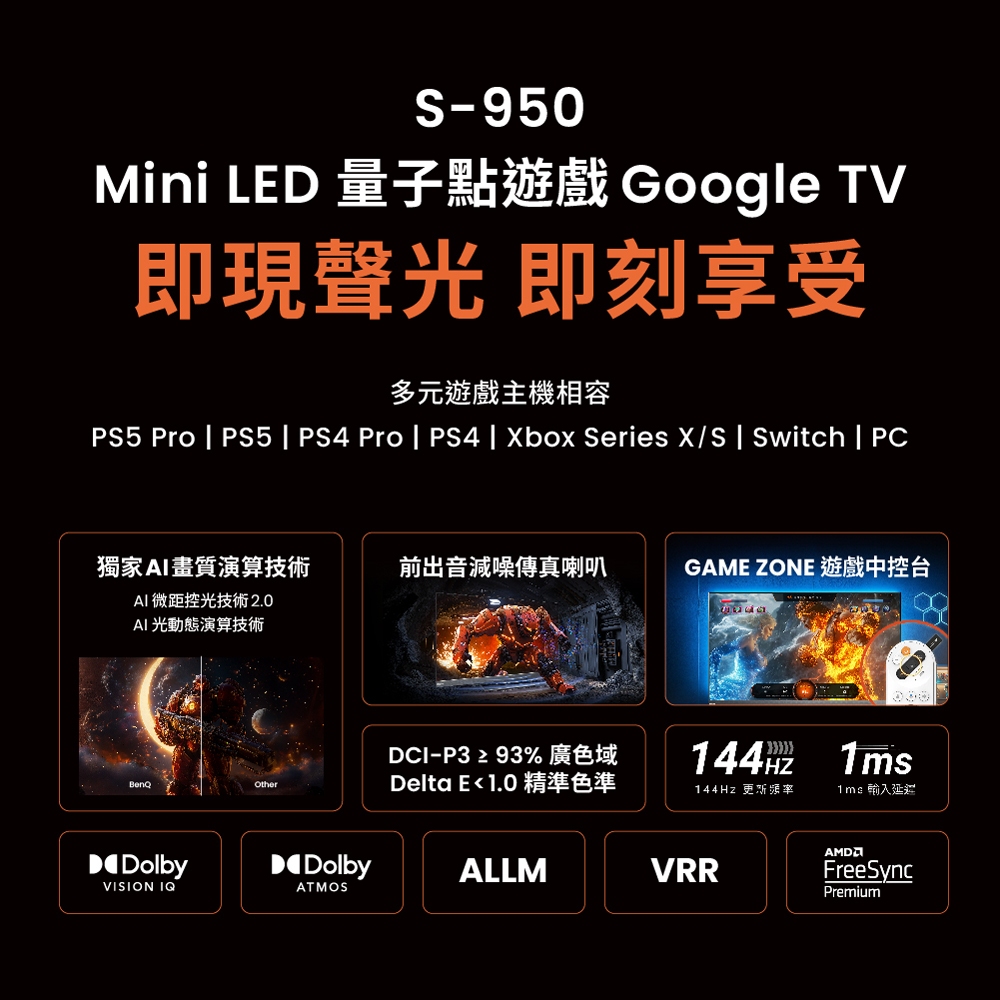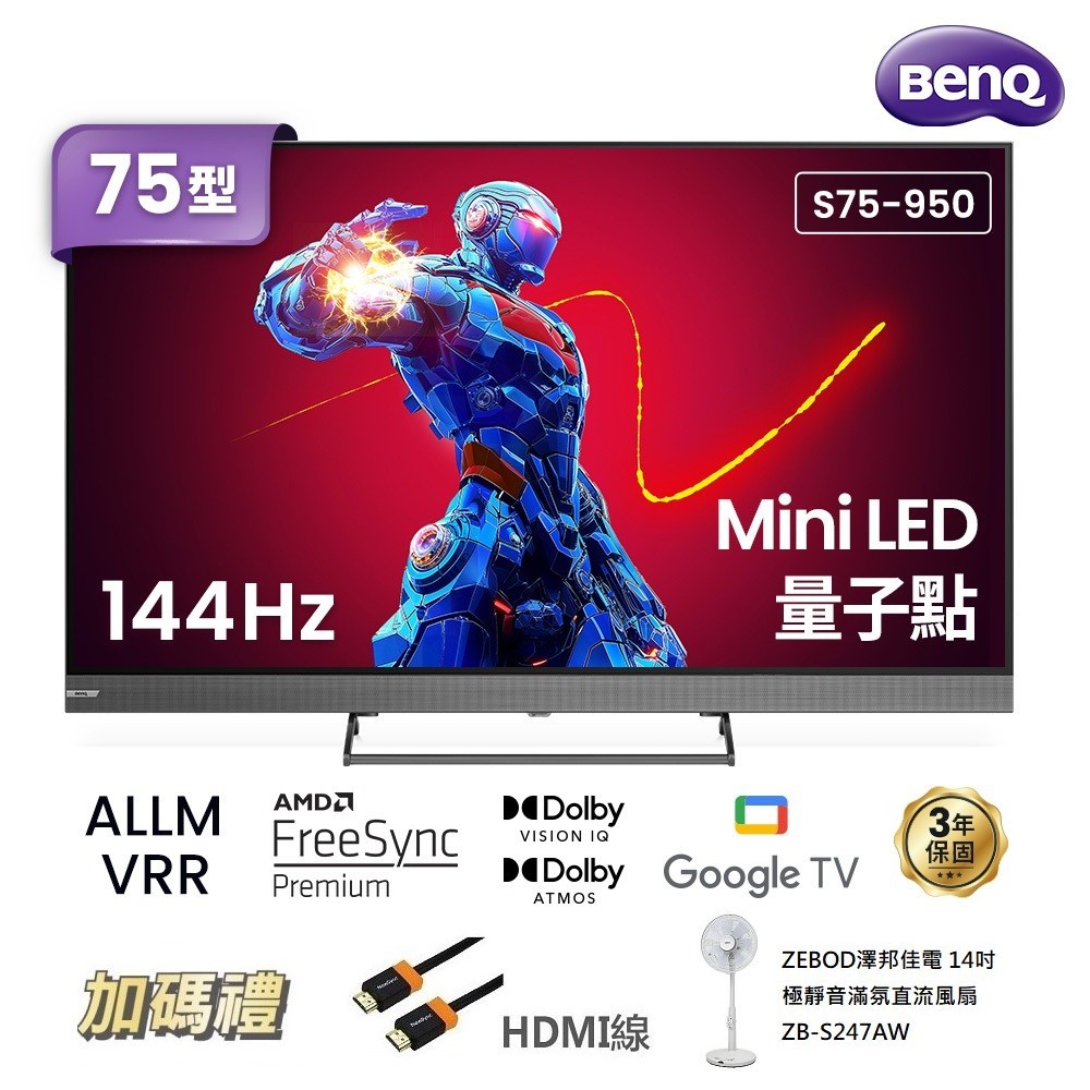 【BenQ】75型 MiniLED 量子點遊戲Google TV S75-950 送HDMI線、澤邦ZB-S247AW【BenQ】75型 MiniLED 量子點遊戲Google TV S75-950 送HDMI線、澤邦ZB-S247AWTVsBenQ 明基大型液晶旗艦館 | 特約授權