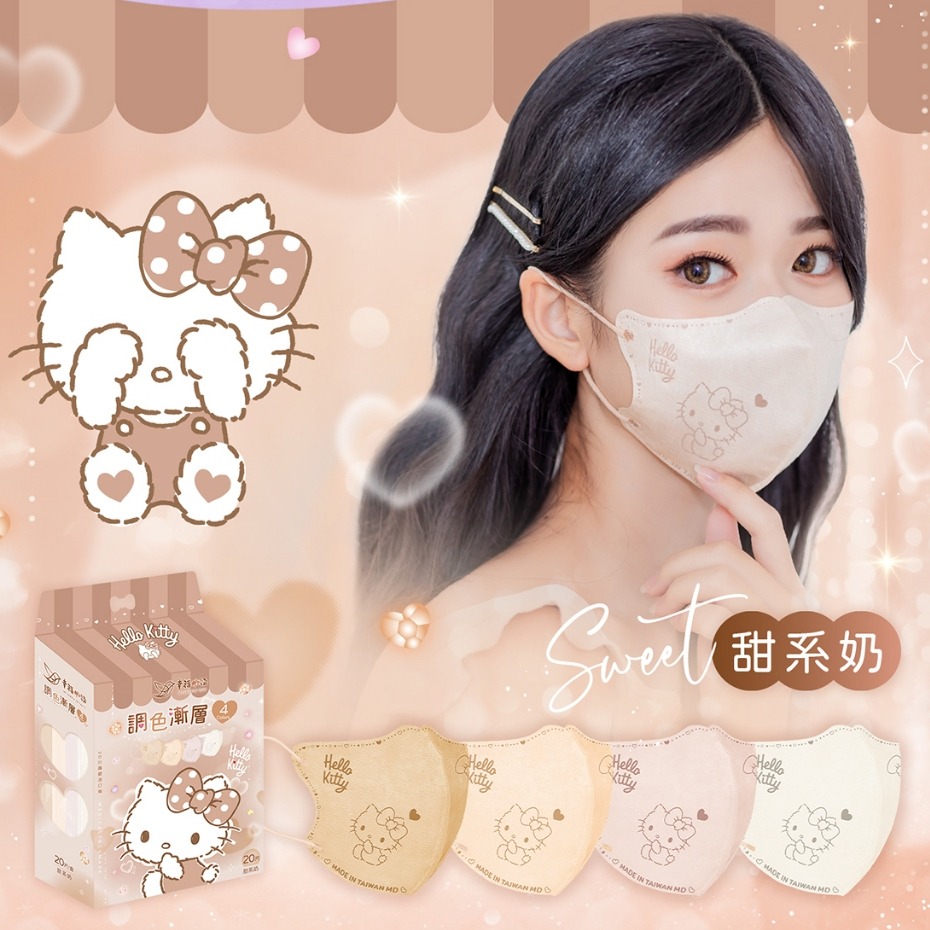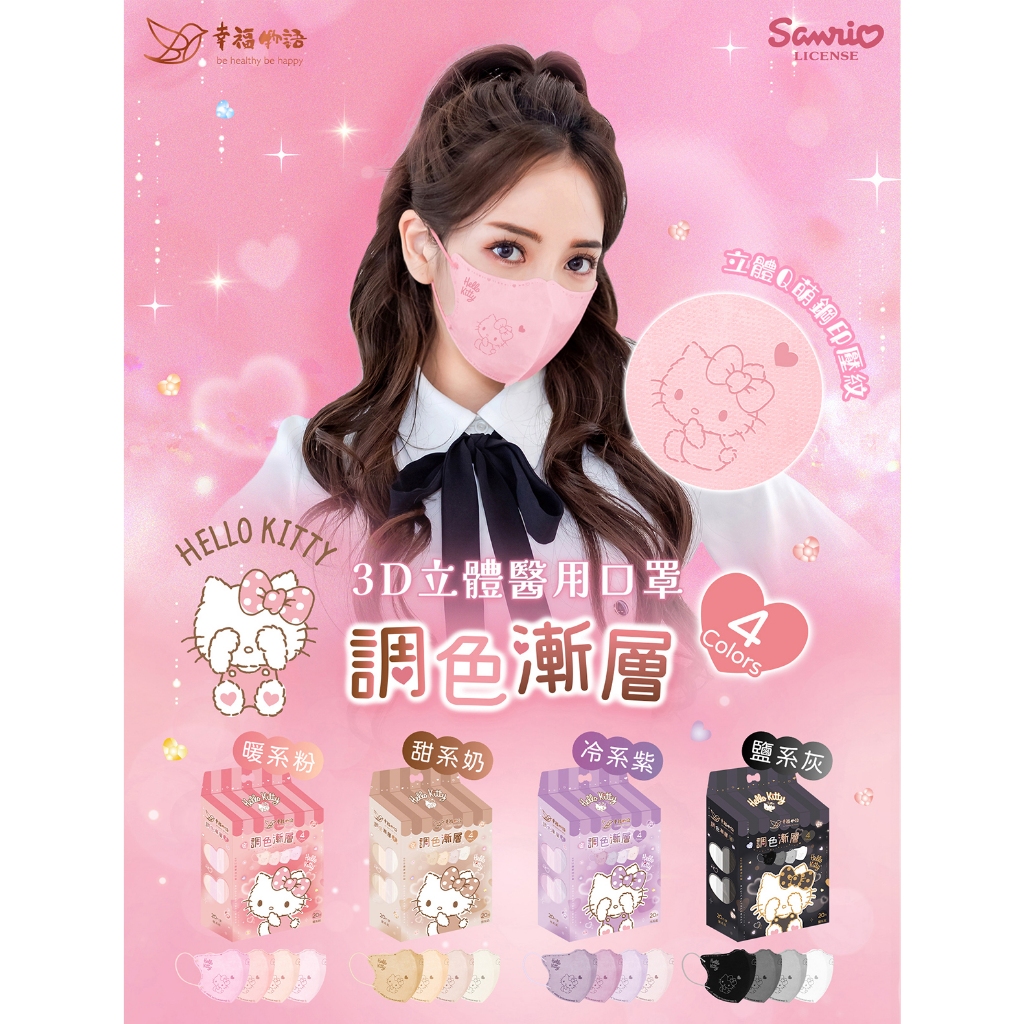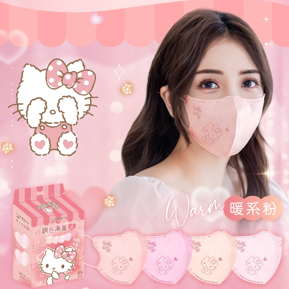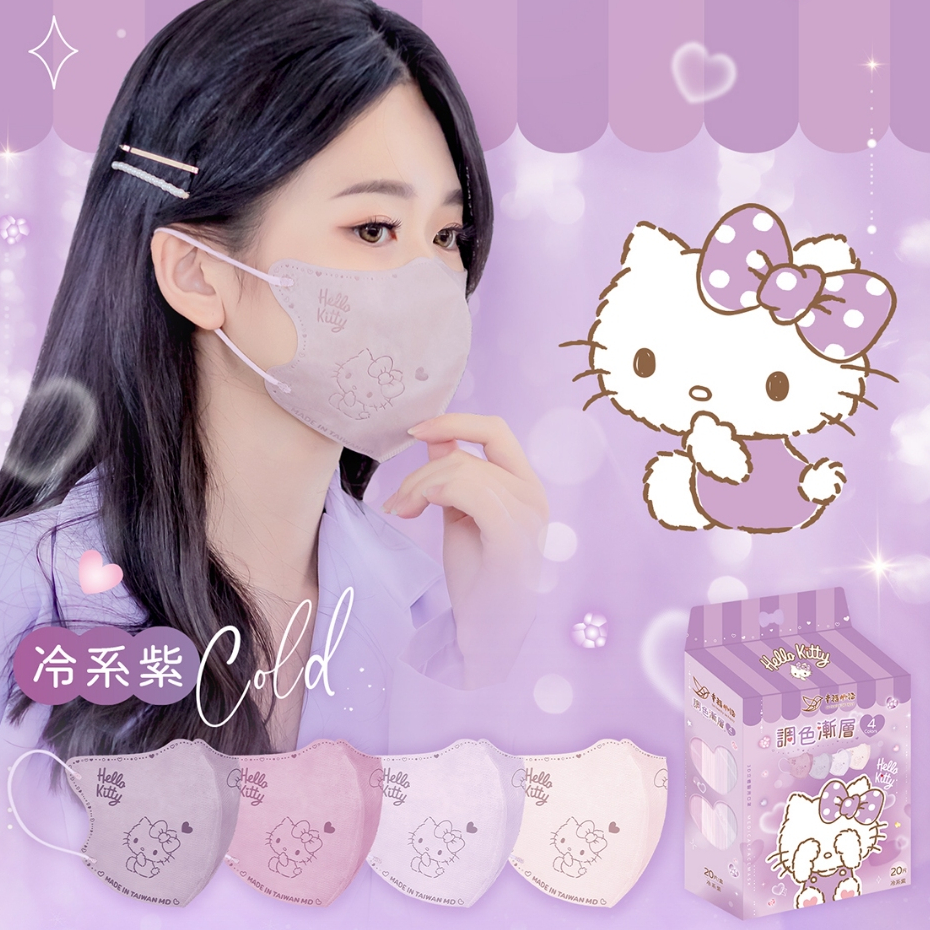 幸褔物語 Hello Kitty 調色漸層 3D立體醫療口罩 20入 台灣製 素色 三麗鷗【BenQ 明基 健康生活】甜系奶 20片・每色5入|冷系紫 20片・每色5入|【已售完】鹽系灰 20片・每色5入|暖系粉 20片・每色5入Medical Gloves & MasksBenQ 明基 健康生活官方直營店