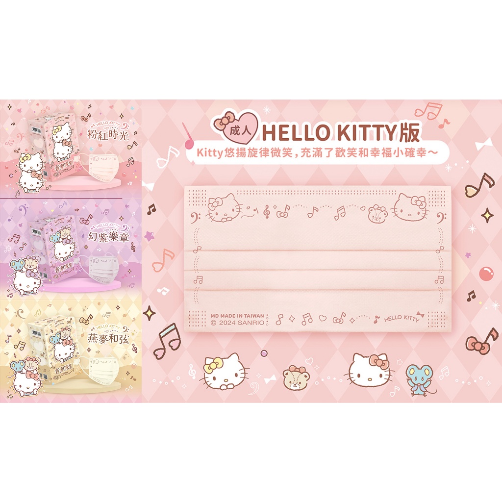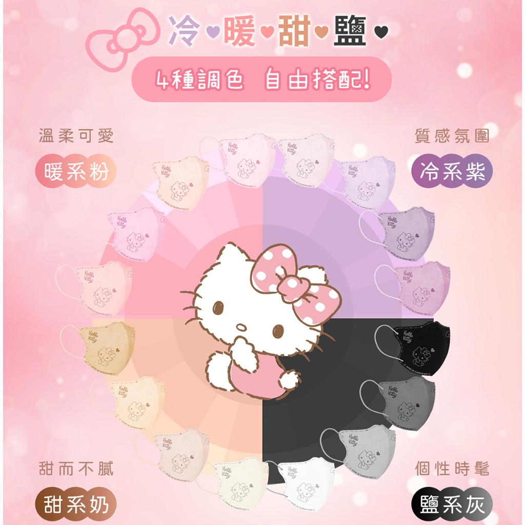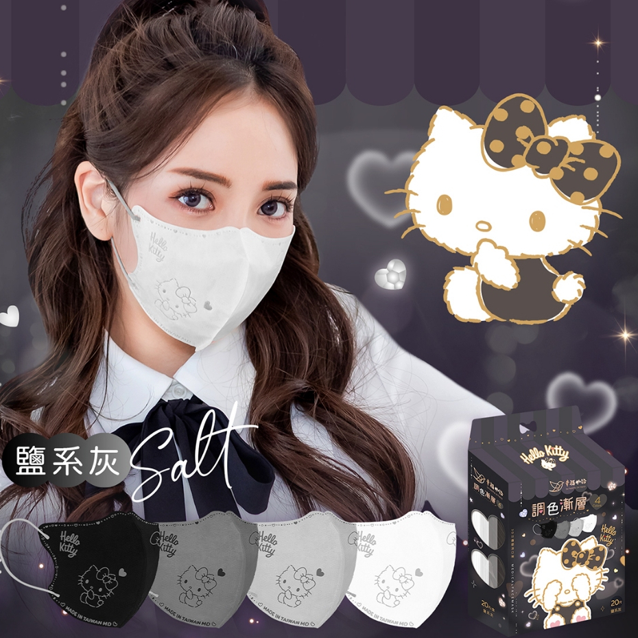 幸褔物語 Hello Kitty 調色漸層 3D立體醫療口罩 20入 台灣製 素色 三麗鷗【BenQ 明基 健康生活】甜系奶 20片・每色5入|冷系紫 20片・每色5入|【已售完】鹽系灰 20片・每色5入|暖系粉 20片・每色5入Medical Gloves & MasksBenQ 明基 健康生活官方直營店