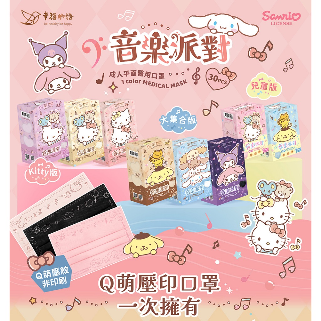 幸福物語 三麗鷗 平面醫療口罩 30入 音樂派對 Kitty 酷洛米 素色 成人 兒童 【BenQ 明基 健康生活】成人|Kitty鋼印|粉彩紅3色|成人|Kitty鋼印|粉彩奶3色|成人|Kitty鋼印|粉彩紫3色|成人|Kitty派對鋼印|燕麥和弦|成人|Kitty派對鋼印|粉紅時光|成人|Kitty派對鋼印|幻紫樂章|成人|三麗鷗大集合鋼印|奶茶樂曲|成人|三麗鷗大集合鋼印|純白旋律|成人|三麗鷗大集合鋼印|黑暗音符|兒童4-8Y|三麗鷗大集合鋼印|藍調旋律|兒童4-8Y|三麗鷗大集合鋼印|莓粉音符|成人|酷洛米鋼印|葡萄優格|兒童4-8Y|酷洛米鋼印|藍莓馬芬|兒童4-8Y|酷洛米鋼印|紫芋布丁|成人|酷洛米鋼印|焦糖可頌Medical Gloves & MasksBenQ 明基 健康生活官方直營店