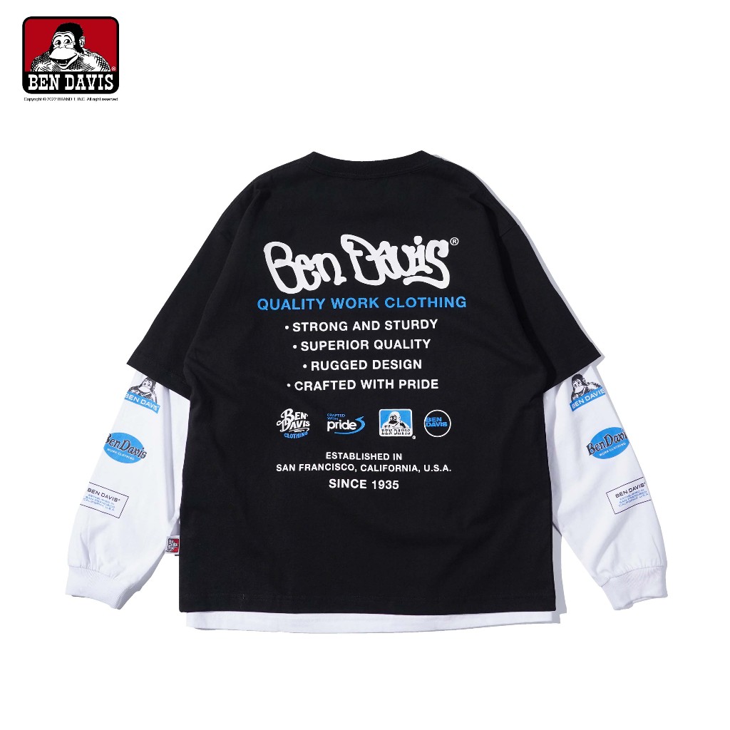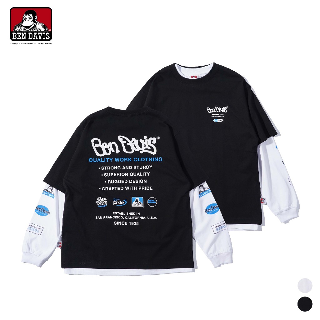 BEN DAVIS LS&SS 2TEES LAYERED (WIDE) 薄長T 兩件式可分開穿 2色黑色,M|黑色,L|黑色,XL|白色,M|白色,L|白色,XLBEN DAVIS品牌旗艦店