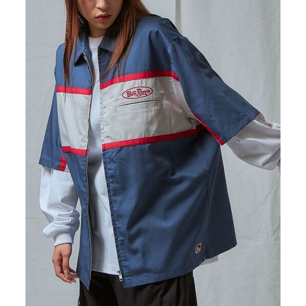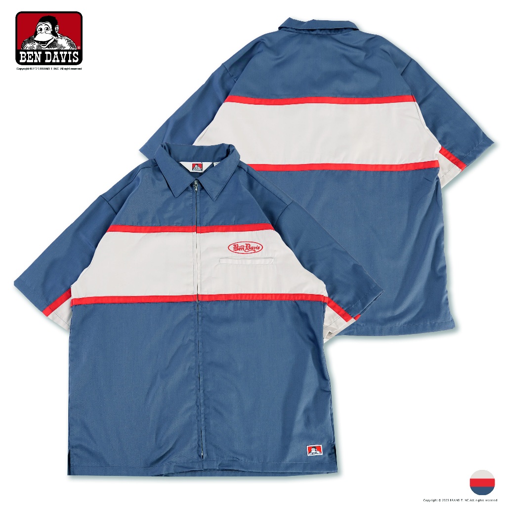 BEN DAVIS PANELLED ZIP FRONT WORK SHIRT 個性 拼接 拉鍊 工作 翻領 襯衫深藍,M|深藍,L|深藍,XLShirtsBEN DAVIS品牌旗艦店