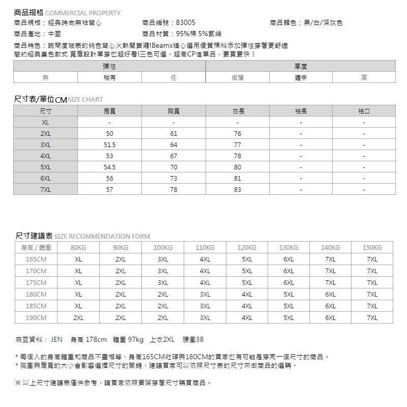 【胖胖星球】中大尺碼‧經典時尚無袖背心 2XL~7XL‧加大/背心【83005】深灰色,2XL|深灰色,3XL|深灰色,4XL|深灰色,5XL|深灰色,6XL|深灰色,7XL|白色,2XL|白色,3XL|白色,4XL|白色,5XL|白色,6XL|白色,7XL|黑色,2XL|黑色,3XL|黑色,4XL|黑色,5XL|黑色,6XL|黑色,7XLTanks & CamisolesBEMAX胖胖星球
