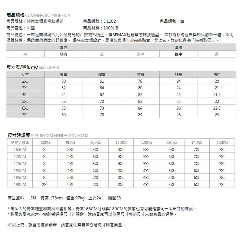 【胖胖星球】中大尺碼‧時尚立領直條紋襯衫 2XL~7XL‧加大【D1102】白色,2XL|白色,3XL|白色,4XL|白色,5XL|白色,6XL|白色,7XLShirtsBEMAX胖胖星球