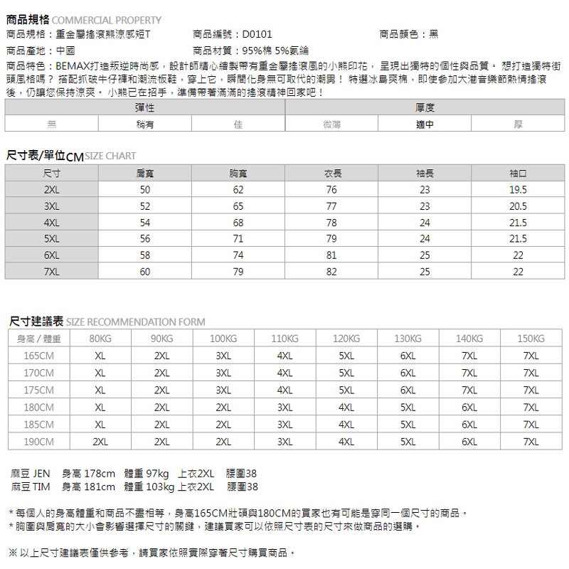 【胖胖星球】中大尺碼‧重金屬搖滾熊涼感短T 2XL~7XL‧加大【D0101】黑色,2XL|黑色,3XL|黑色,4XL|黑色,5XL|黑色,6XL|黑色,7XLT-ShirtsBEMAX胖胖星球