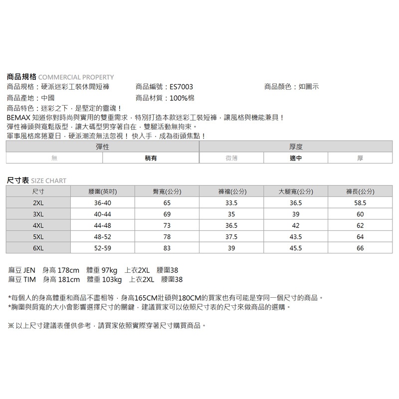 【胖胖星球】中大尺碼‧硬派迷彩工裝休閒短褲 2XL~6XL‧加大【ES7003】如圖示,2XL|如圖示,3XL|如圖示,4XL|如圖示,5XL|如圖示,6XLBEMAX胖胖星球