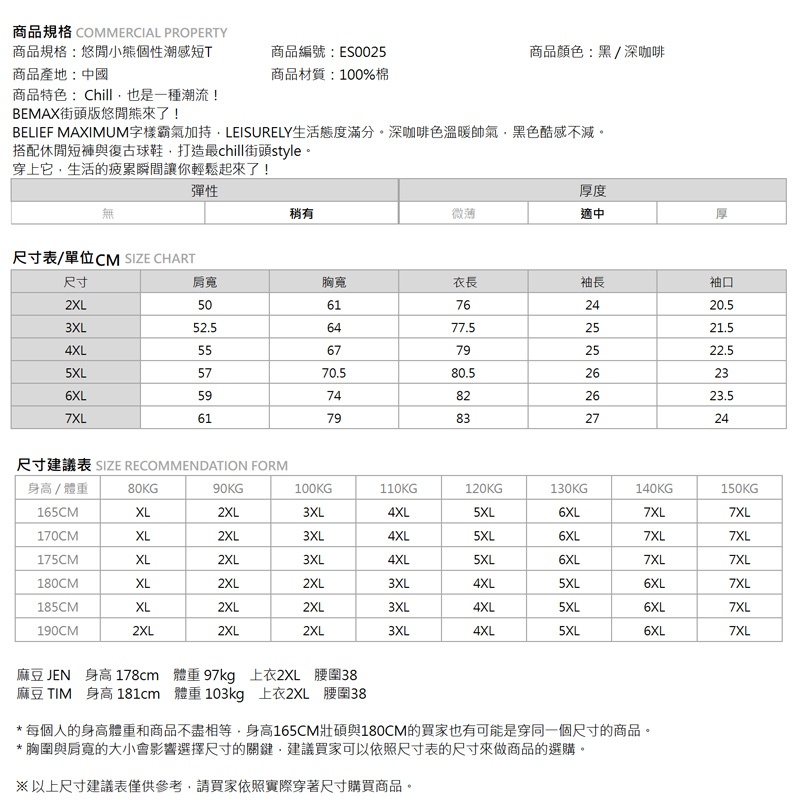 【胖胖星球】中大尺碼‧悠閒小熊個性潮感短T 2XL~7XL‧加大【ES0025】深咖啡色,4XL|深咖啡色,5XL|深咖啡色,6XL|深咖啡色,7XL|黑色,2XL|黑色,3XL|黑色,4XL|黑色,5XL|黑色,6XL|黑色,7XL|深咖啡色,2XL|深咖啡色,3XLT-ShirtsBEMAX胖胖星球